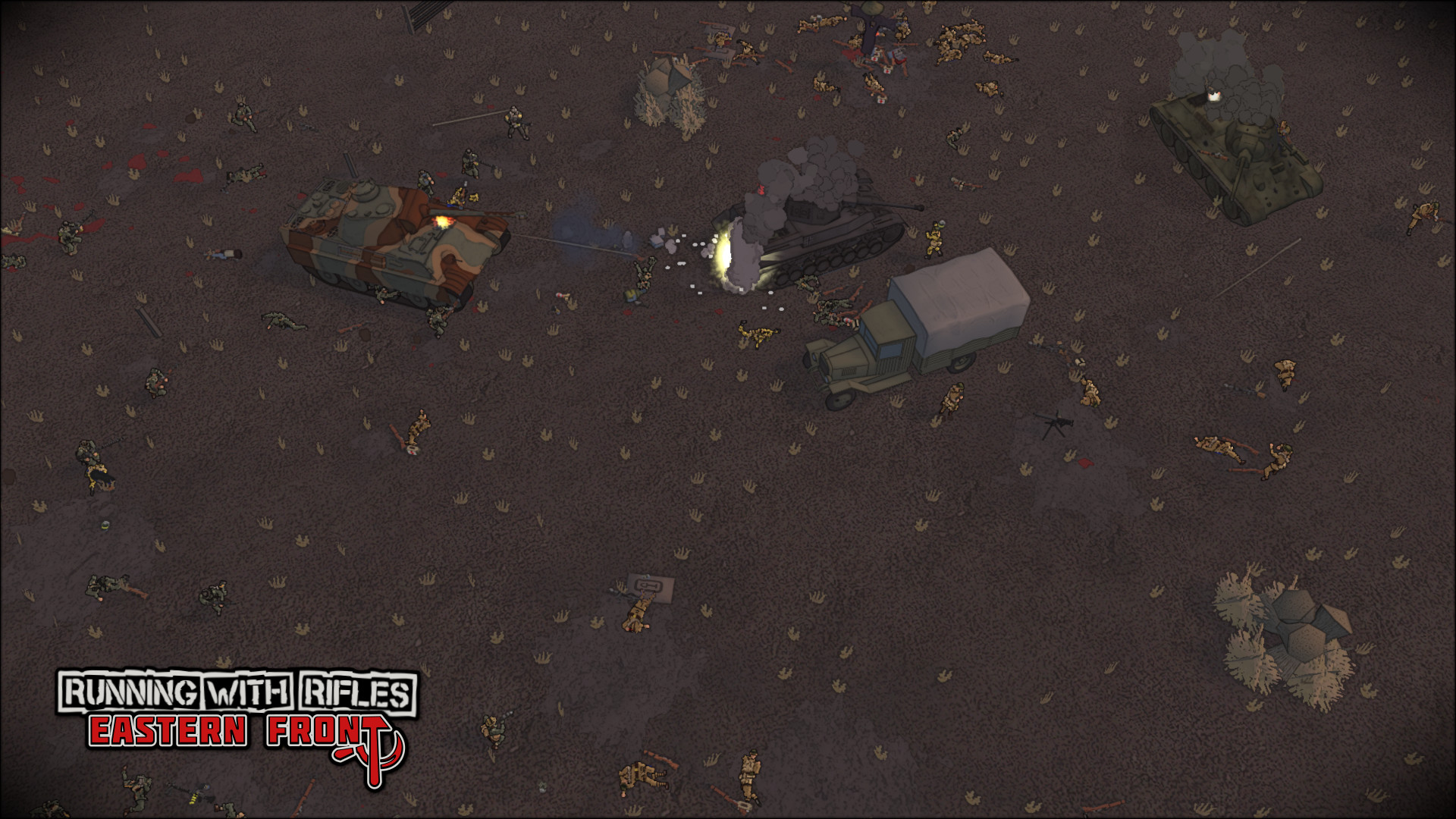In RUNNING WITH RIFLES: EASTERN FRONT, take the fight to the Eastern theater of the second World War and battle over the expansive steppe, from the streets of the smallest rural villages to the ruins of the largest industrial factories, and prepare to fight for every inch with blood and iron!