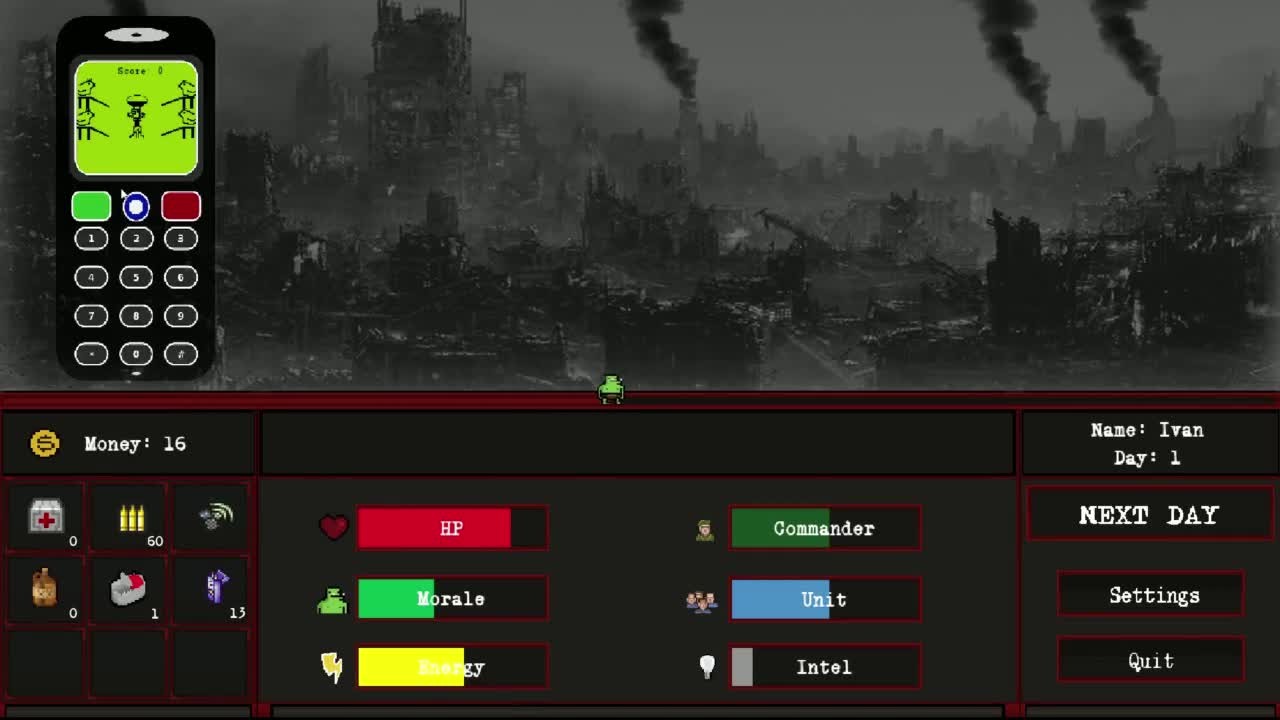 Hello guys, Eny Project Studio presents our first PC game. 30 Days in red army is a simple text RPG with pixelated graphic and randomized events and results. Game was created to reflect our attitude against war activities by you know who and his incompetent army.