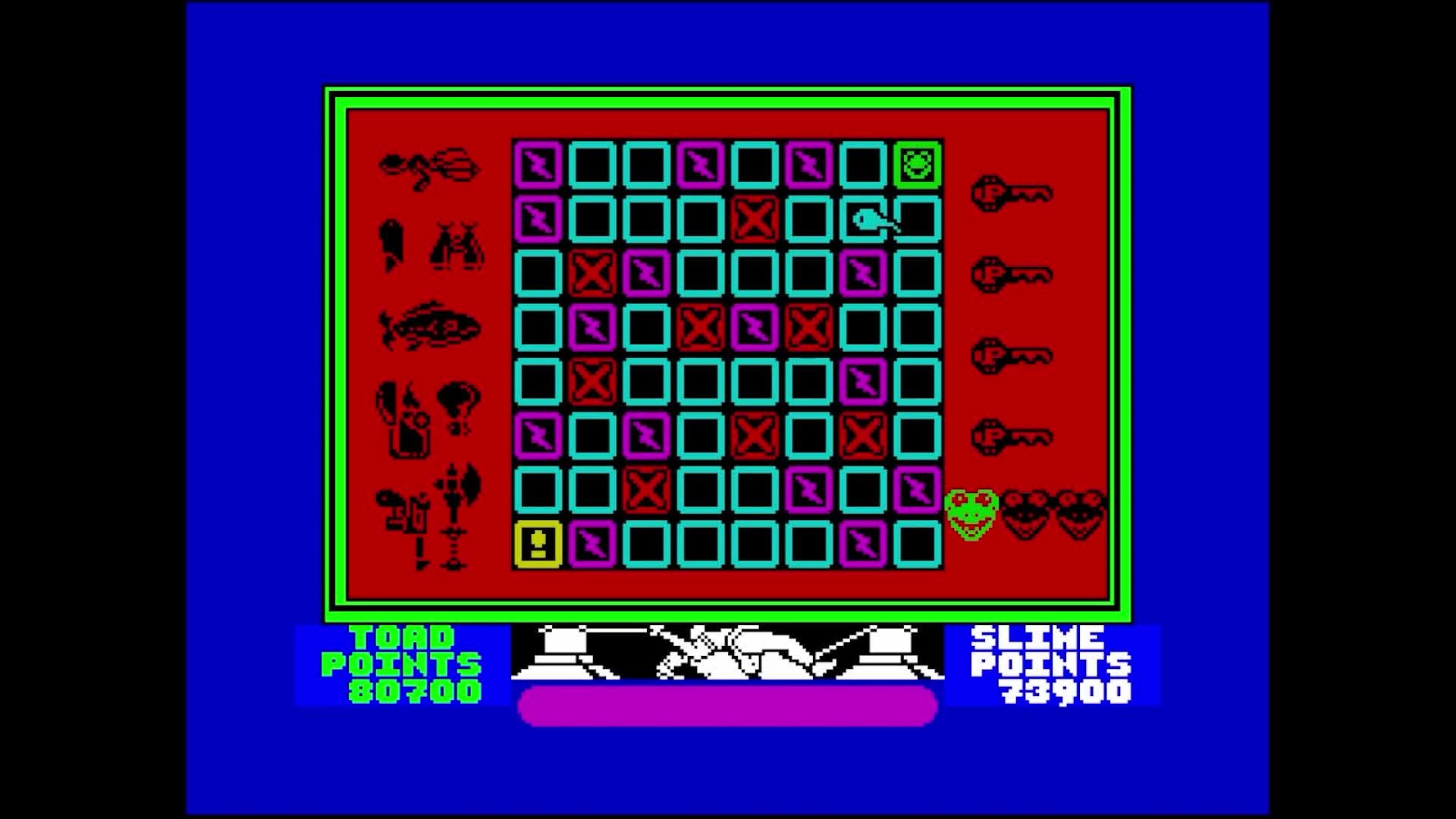 The Queen of the Cosmic Wartoads has been abducted by the Rigellian Slime Beasts, their deadliest foe, and turned into the most hideous thing imaginable: a human being! Traverse the Rygellian Time-Void, reach the Slime King's lair and dismantle their deathly machine with your Cosmic Tool Kit.