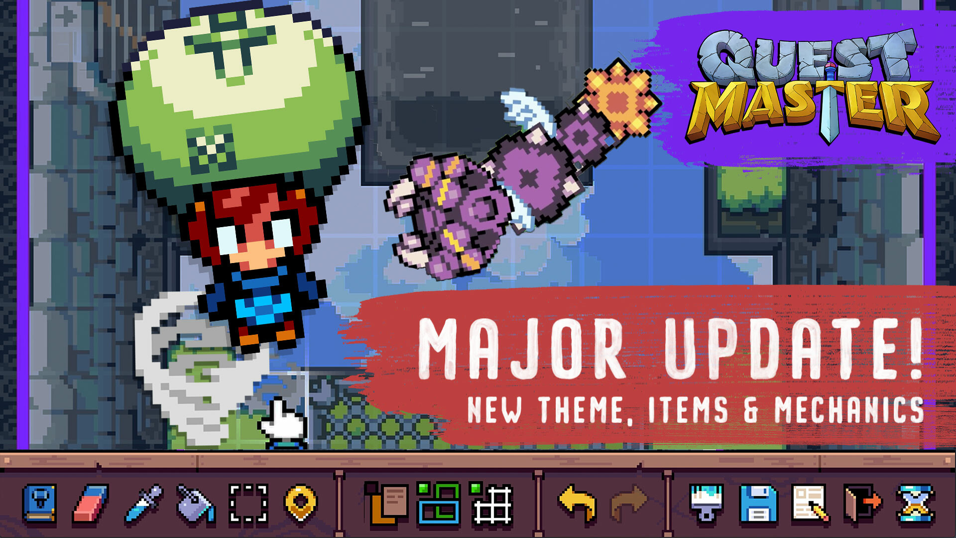 Quest Master is a dungeon maker inspired by the classics that first made us love dungeon crawling. Unleash your imagination, alone or in local co-op, to make dungeons full of puzzles, traps and monsters. Upload them for others to explore and challenge yourself with other players’ creations.