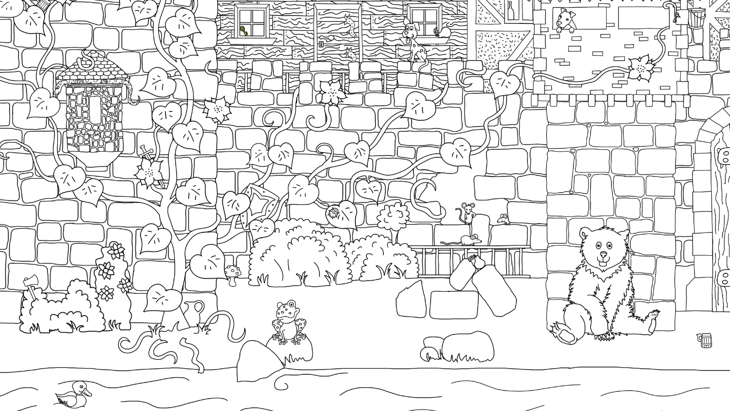 In Burg Wimmel the player has to find black and white hand-painted objects in the setting of a medieval castle and bring them to colorful life.