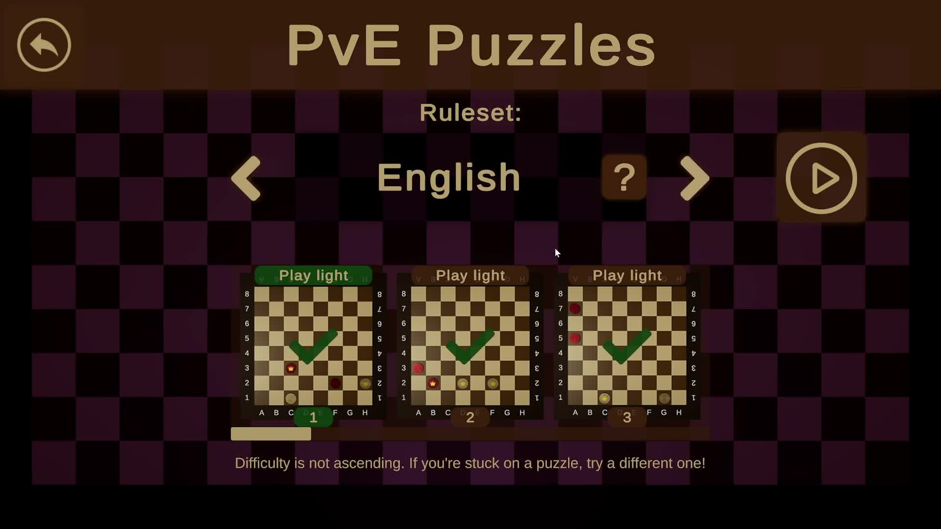 Checkers is a timeless classic, steeped in rich history. This release supports 4 rulesets and includes PvE, PvP, and puzzle modes. From the casual checkers enthusiast to the competitive master, this game is sure to provide hours of entertainment and mental stimulation.