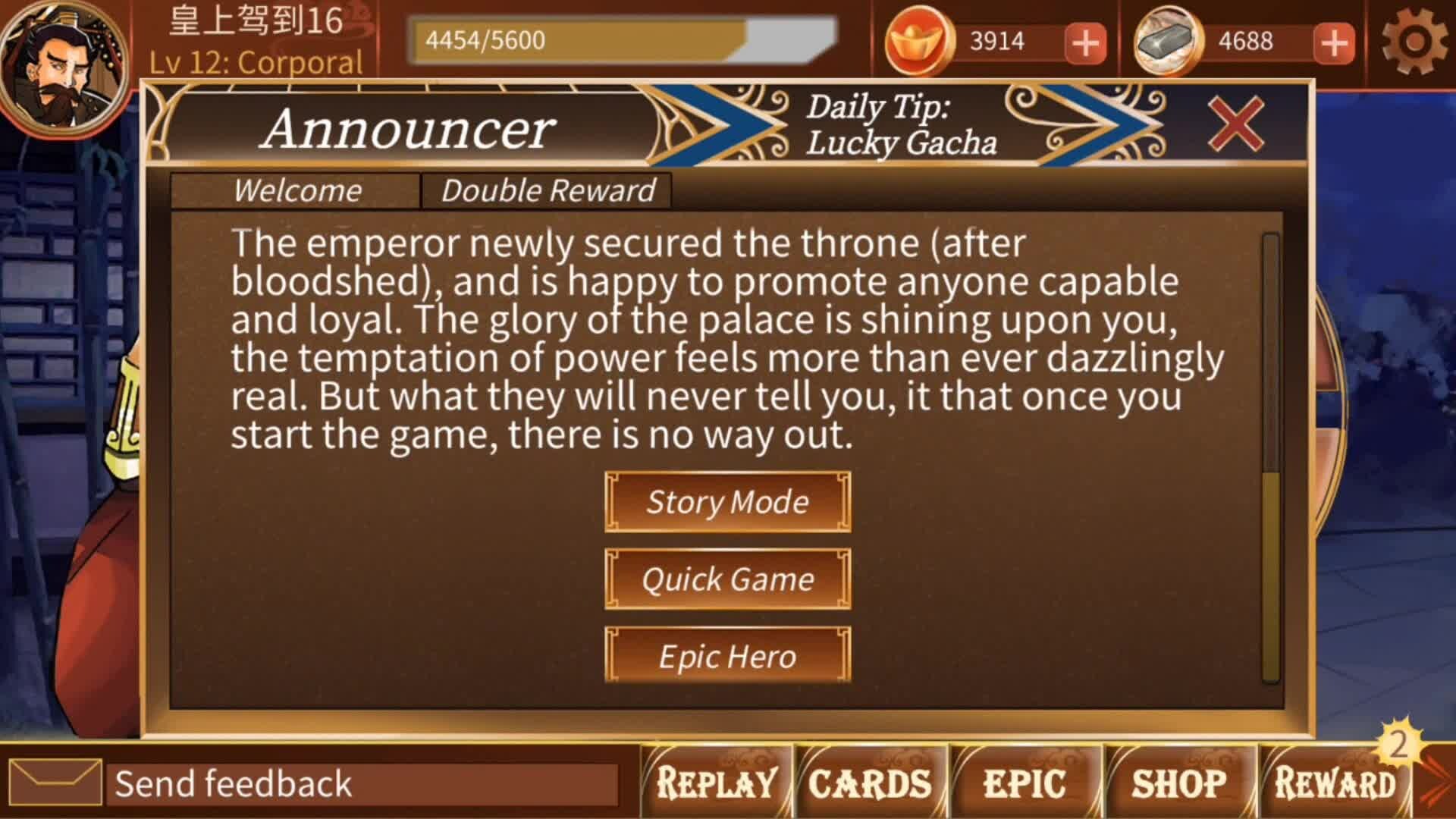Imperial Storm is a new style card strategy game. Recruit trustworthy followers to counter conspiracy and become a strong power in the court! In addition to receiving early access in-game rewards, Steam users will also receive an extra 1500 gold, equivalent to $15 worth of gacha pulls!