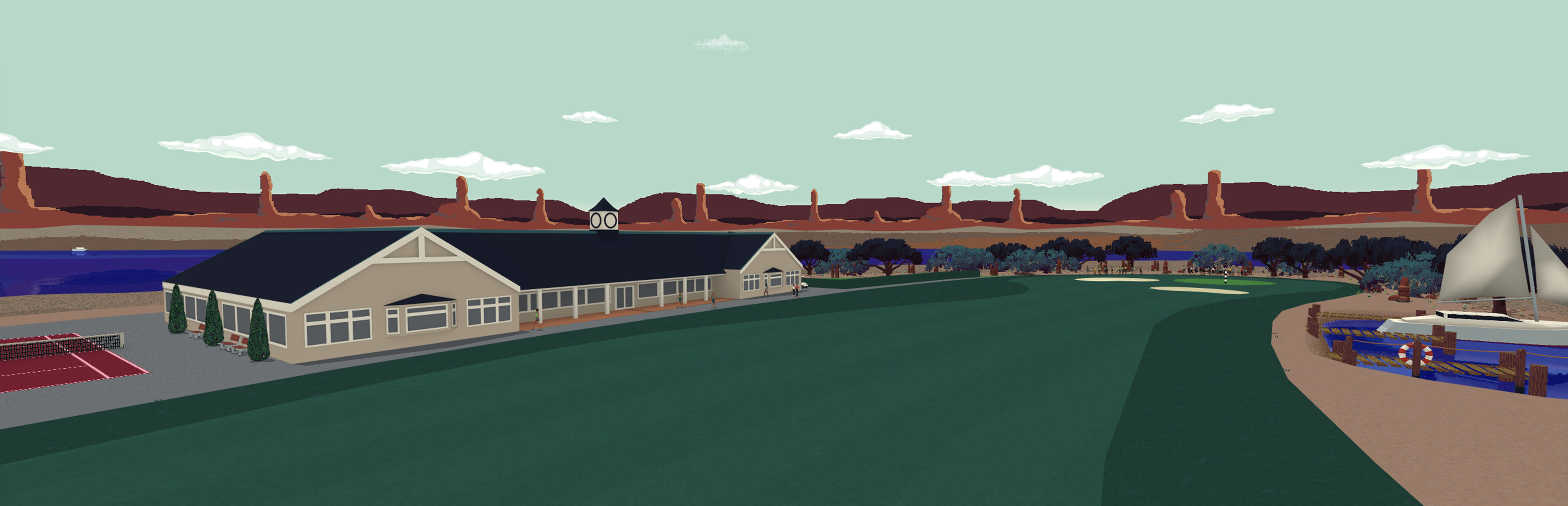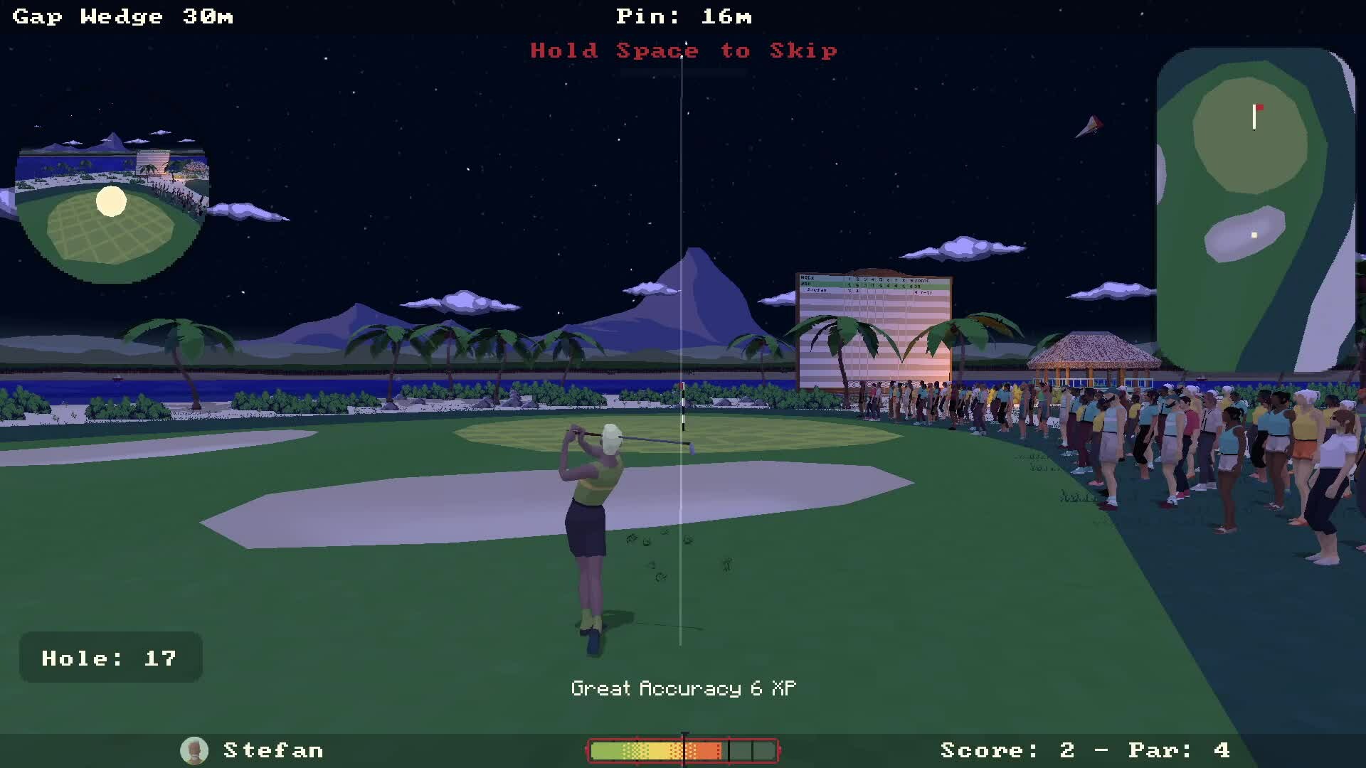 Super Video Golf is a turn based 90s themed golf game, with up to 8 players locally or 8 computers online allowing a total of 16 players in a single game. Challenge yourself in Career mode or others online and offline in Free Play.