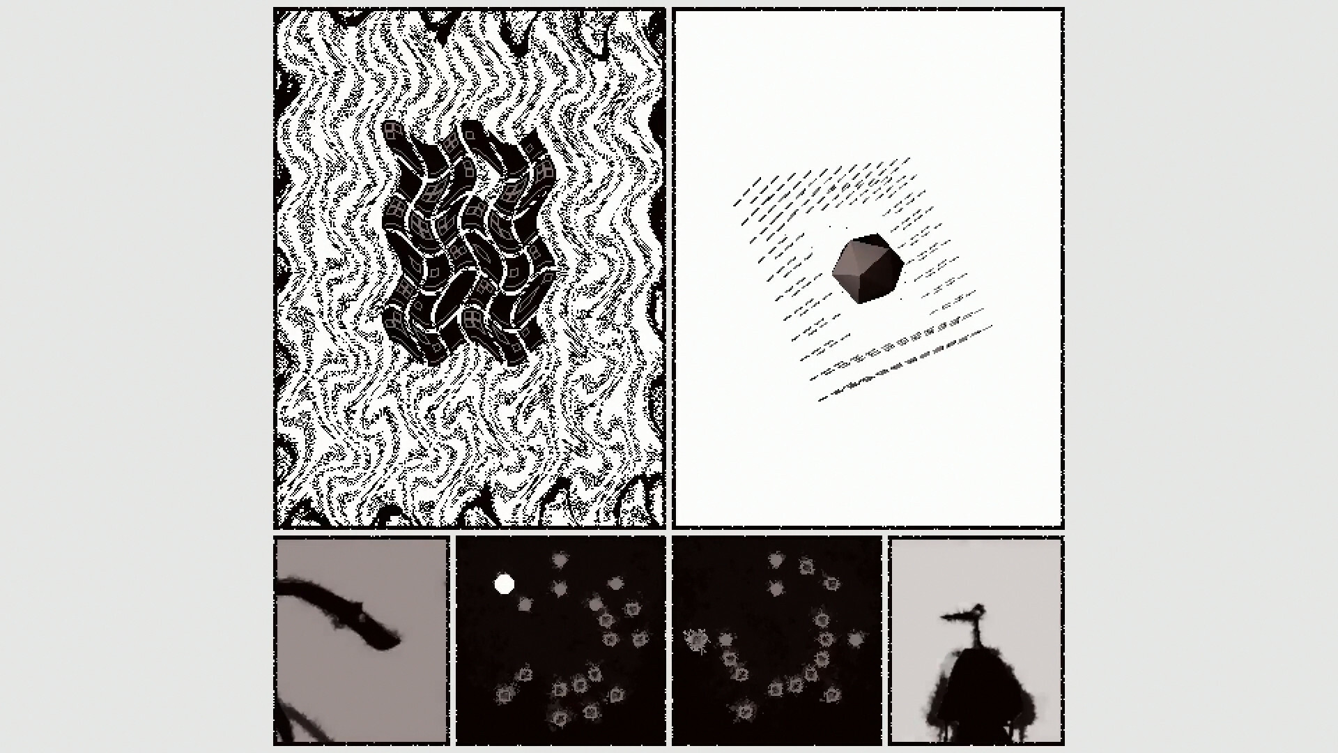 Decode the control glyph and challenge strange entities in a short audiovisual composition / videogame hybrid.