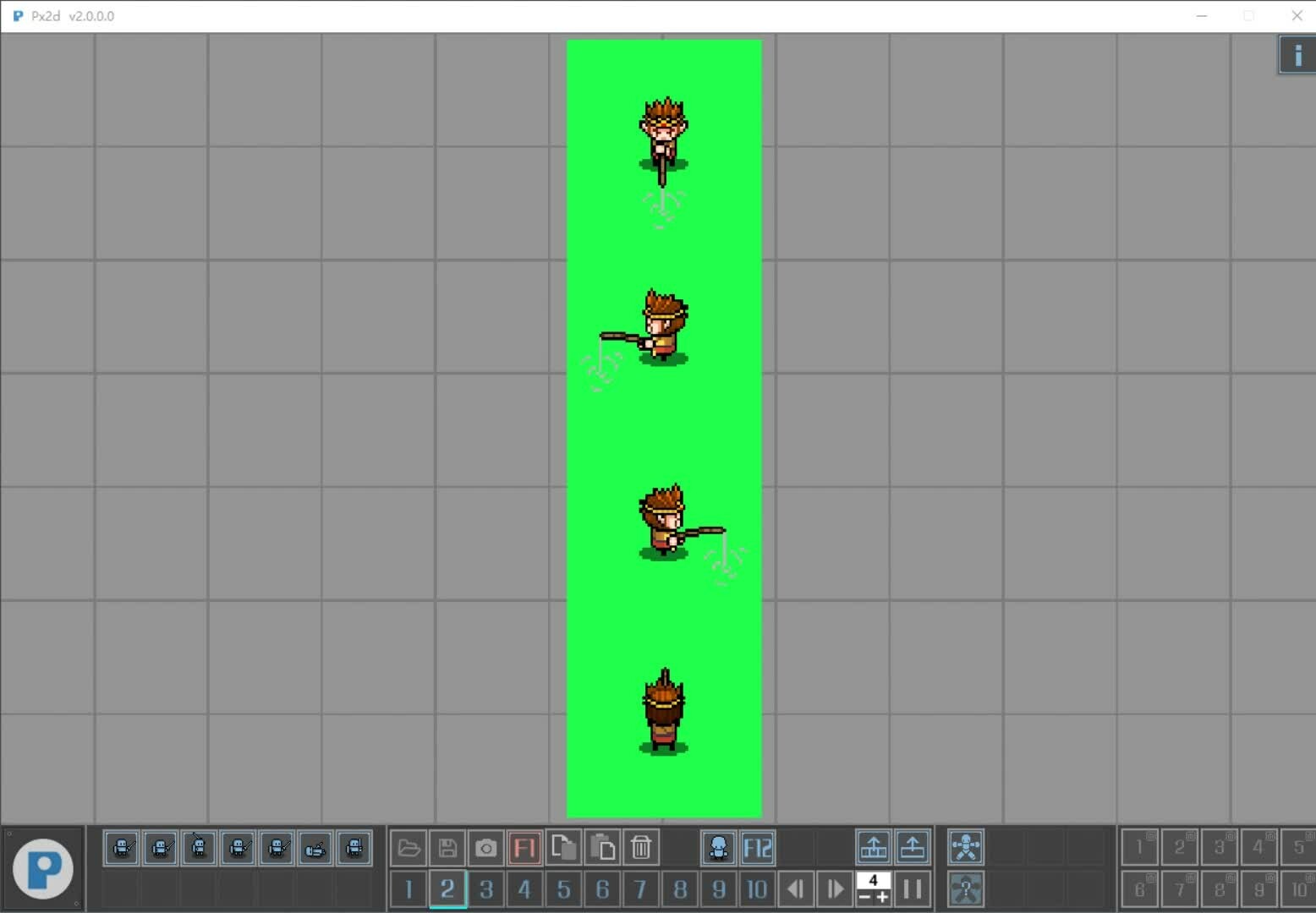 [px2d] is an editor that specializes in making 2d pixel character animation. Currently, you can generate up to 4-direction roles. Support user-defined action templates. User defined material import is supported.