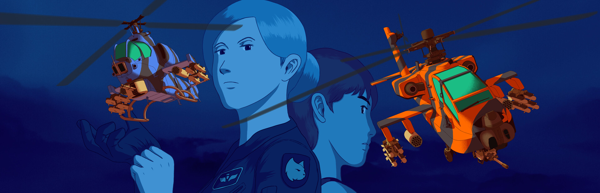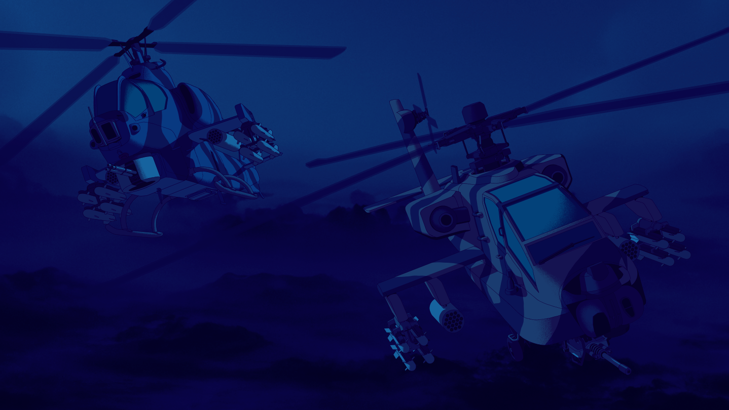 Dual elevation horizontal 2D arcade shoot 'em up co-op helicopter action!