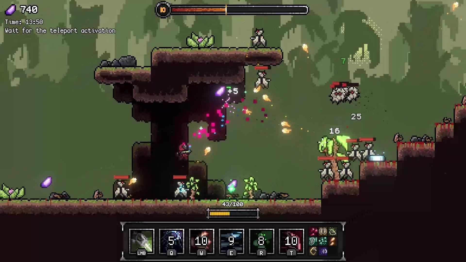 Echo Storm is a 2D action with roguelite elements. Survive enemies attack as long as possible. Death resets the progress, but the longer you survive, the more abilities your character gets. Onslaught of enemies is growing too, so - find best abilities combination and destroy 'em all!