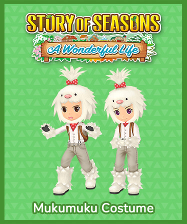 japanese | 牧場物語 Welcome!ワンダフルライフ - ムクムクごっこ | schinese | 牧场物语 Welcome!美丽人生 - 伪装毛蓬蓬套装 | tchinese | 牧場物語 Welcome!美麗人生 - 毛毛怪裝 | koreana | 목장이야기 Welcome! 원더풀 라이프 - 무쿠무쿠 놀이 | french | STORY OF SEASONS: A Wonderful Life - Tenue de Mukumuku | german | STORY OF SEASONS: A Wonderful Life - Mukumuku-Kostüm | spanish | STORY OF SEASONS: A Wonderful Life - Atuendo de Mukumuku |