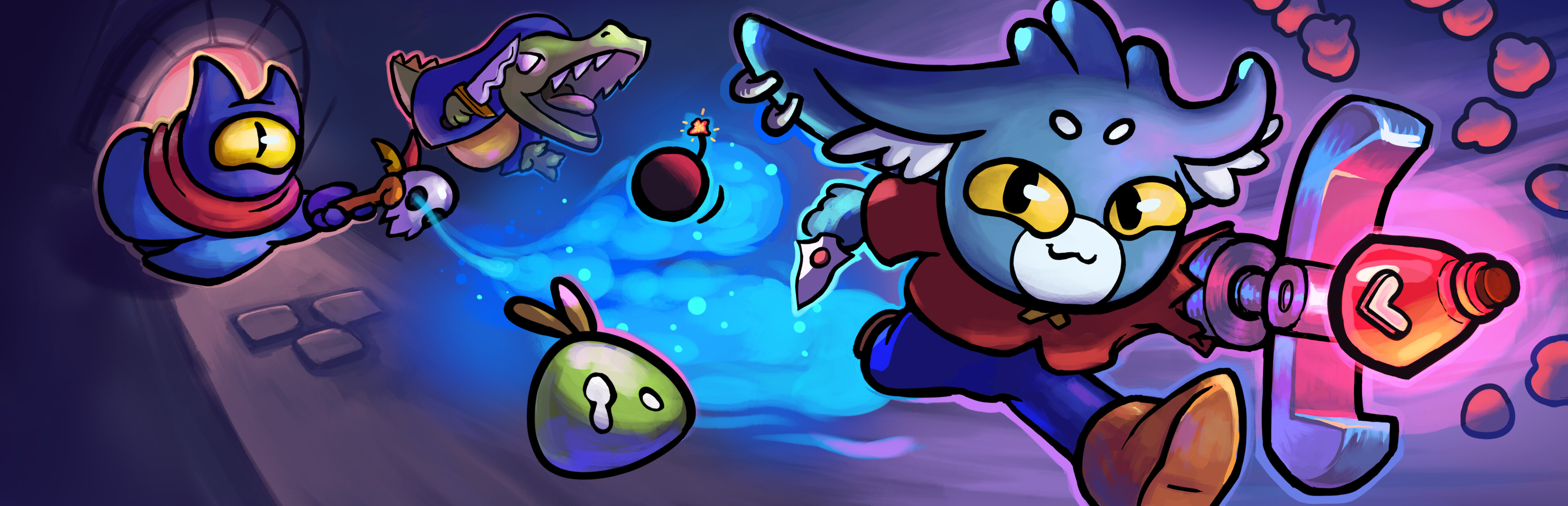 Dungeon Clawler is a Roguelike Claw Machine Deckbuilder. Build your deck, grab weapons and items from the claw machine to battle enemies, discover powerful perks that create game-changing synergies and unleash crazy combos as you fight your way through the dungeon!