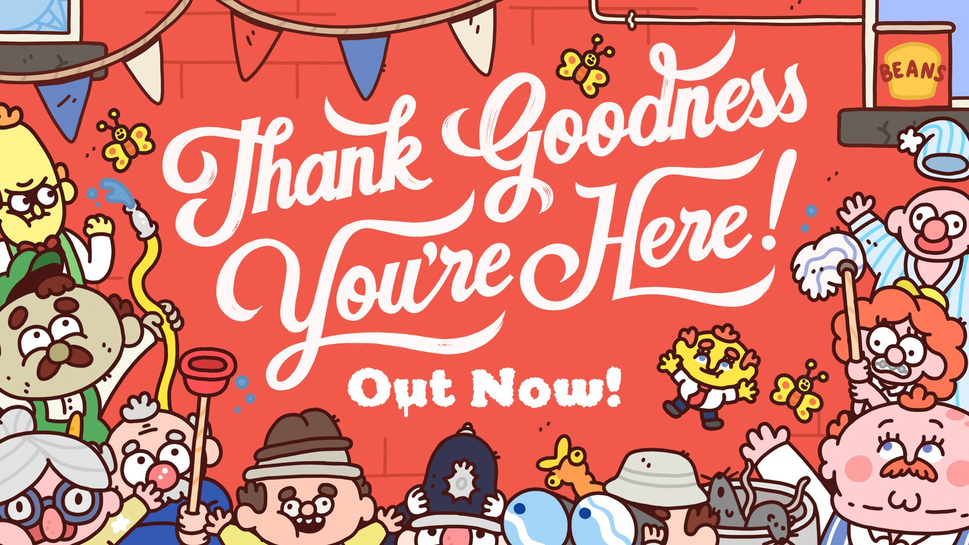 Thank Goodness You're Here! is an absurd comedy slapformer set in the bizarre Northern English town of Barnsworth. As a traveling salesman, take the time to see the sights and meet the locals, who are very eager to give you a series of increasingly odd jobs…