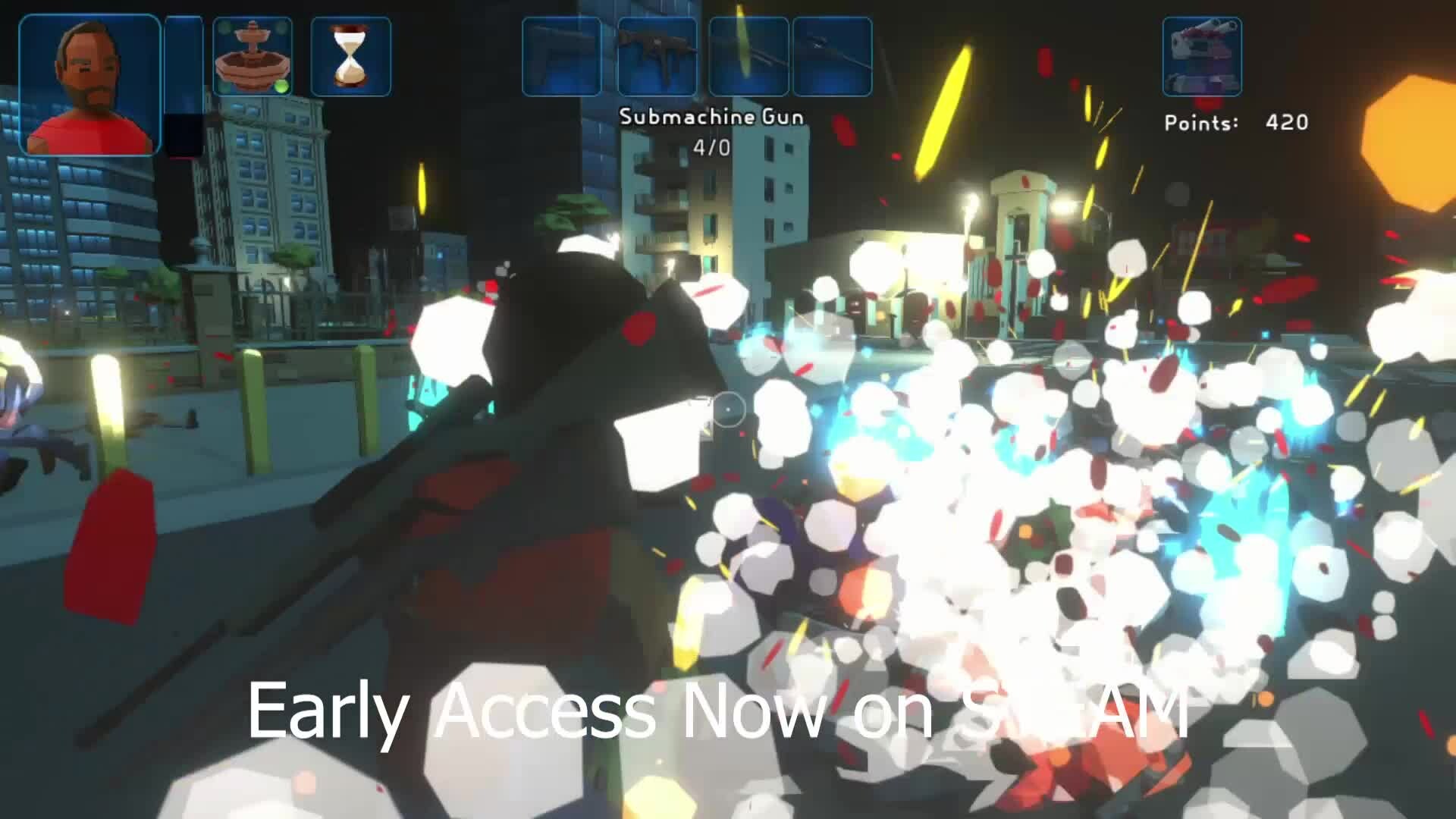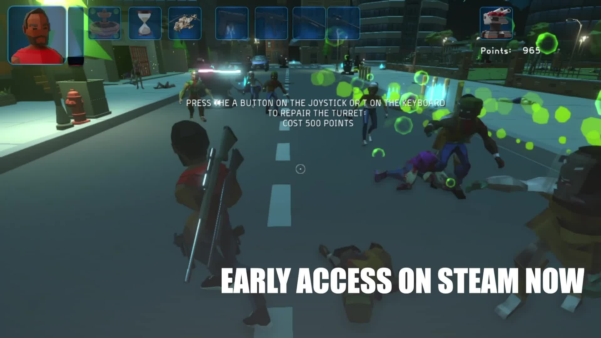 Kill as many zombies as possible, collect points by hitting them, upgrade your weapons and reach the final boss!