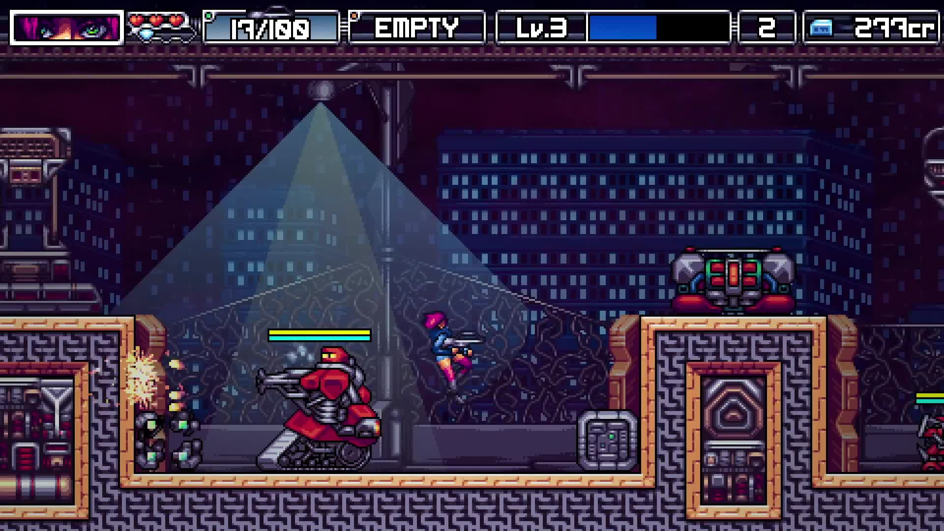Cybertrash STATYX is a story-driven 2D action-platformer with tactical elements, set in a cyberpunk world.
