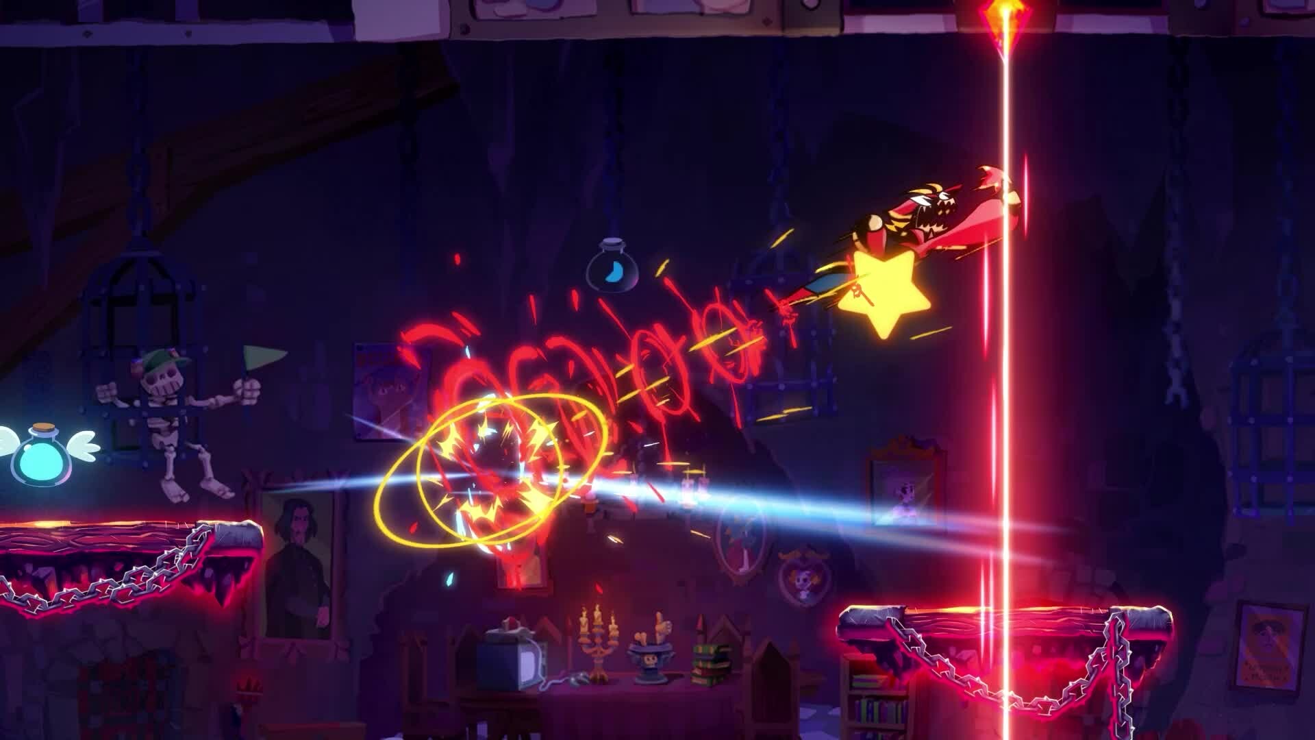 A spellslinging dueling game for up to 4 players. Choose among seven cracked mages and use their unique abilities to shoot down your opponent’s magical flask while defending yours! Destroy your friends (and loved ones) in local or online modes!