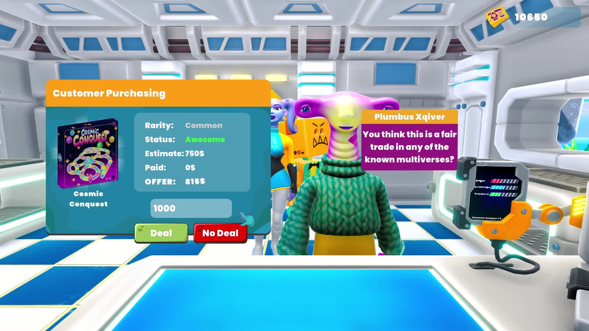 You're in charge of managing the pawn shop in this weird galaxy. Make deals with strange customers, flip items, attend auctions and keep the shop going!