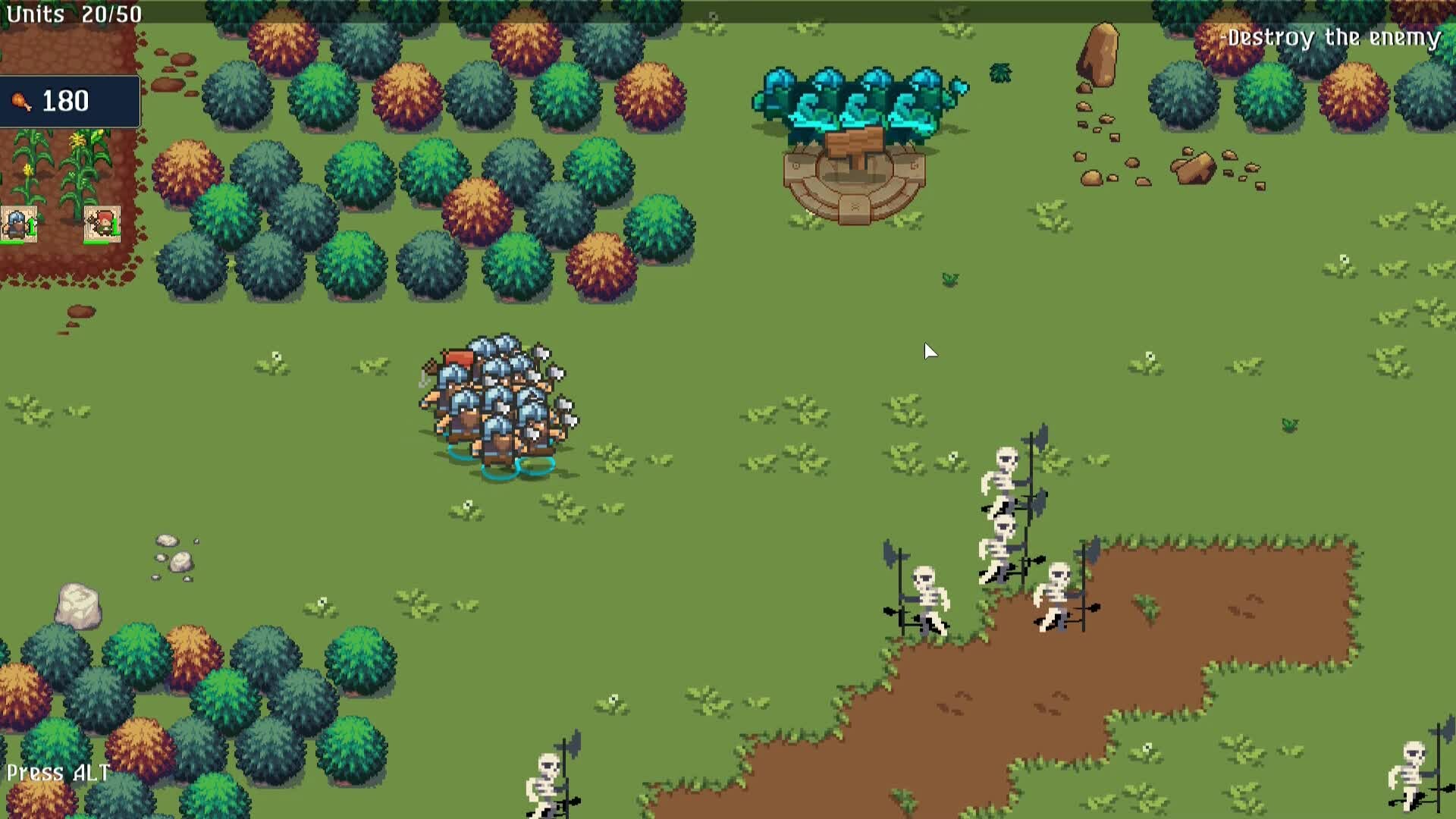 Your task is to destroy all enemies on the map. Farms will provide you with provisions, with which you can hire new soldiers. Gather squads, hire new soldiers, capture farms... All this will help you win!