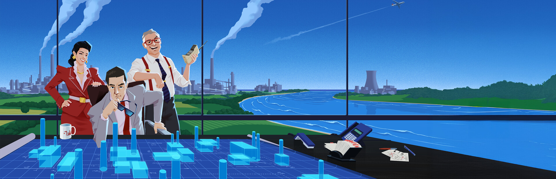 Navigate the competitive industrial landscape of vibrant 1980's USA! Make strategic manufacturing decisions, optimize production chains, acquire technologies, and expand your global business network with key contacts. Opportunities await those savvy enough to capitalize on them!