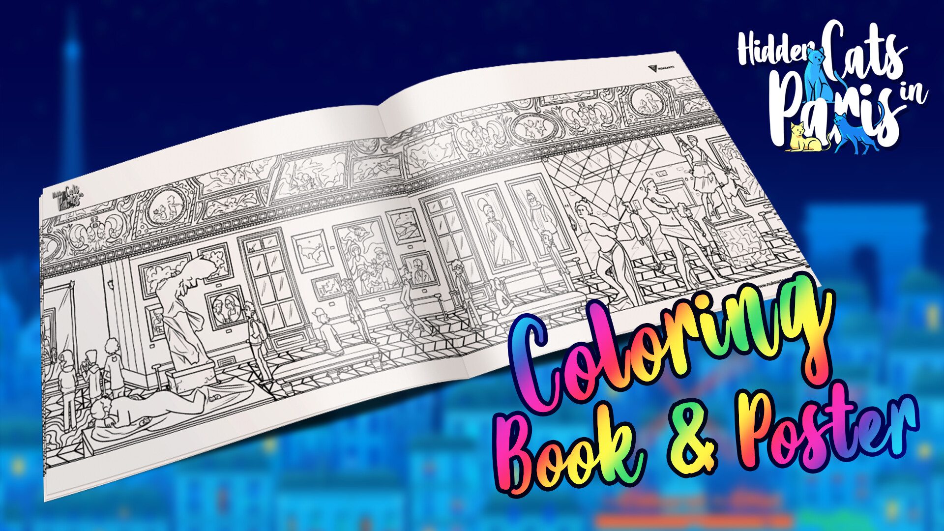 Hidden Cats in Paris - Printable PDF Coloring Book and Poster