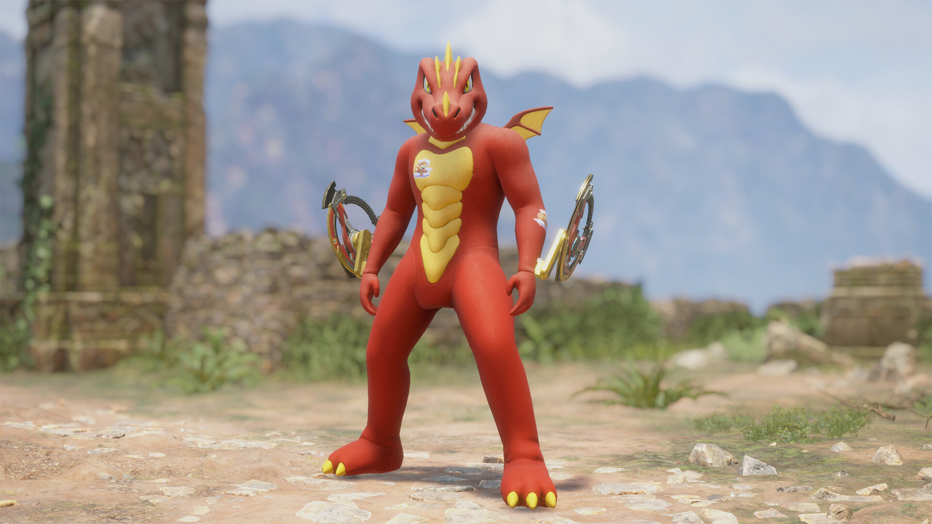 Includes five cosmetic items, including the Assault "Zephyr Alpha" suit skin, which cuts through remote enemies with its chakram. The Flame Dragon, a bright red dragon that seems to be covered in flames! Equip yourself with the cosmetic items and unleash a fiery onslaught like a raging fire!