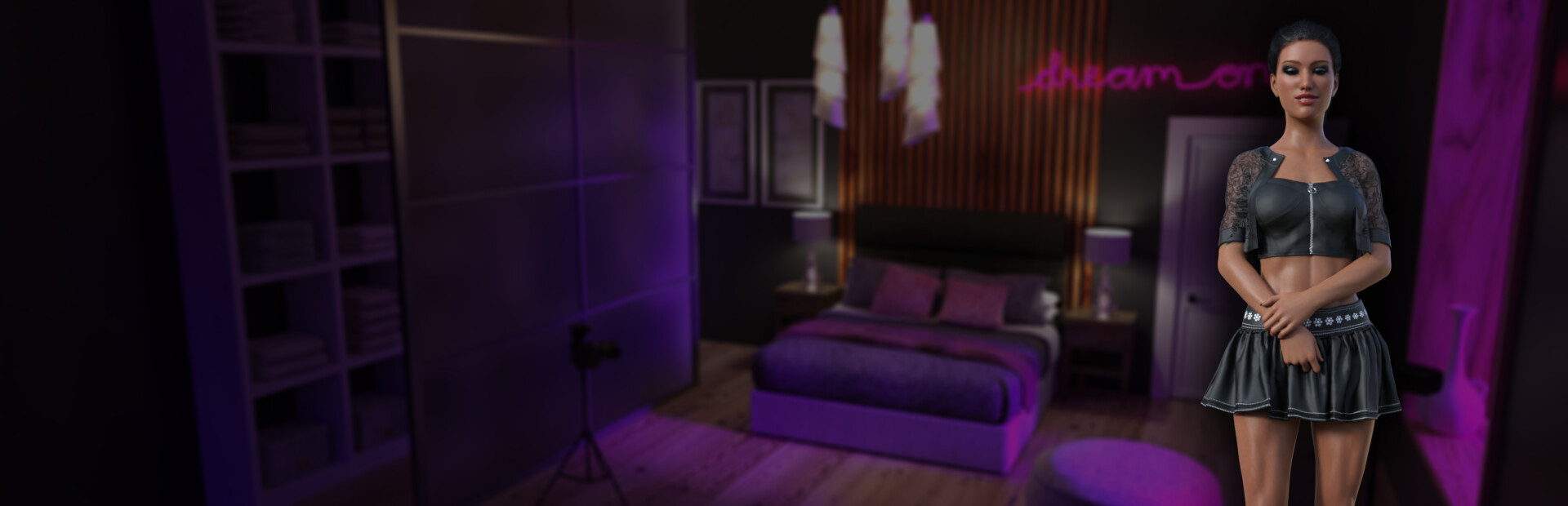 A sex simulation game with visual novel elements, where you play the role of an attractive woman looking for models for her studio.