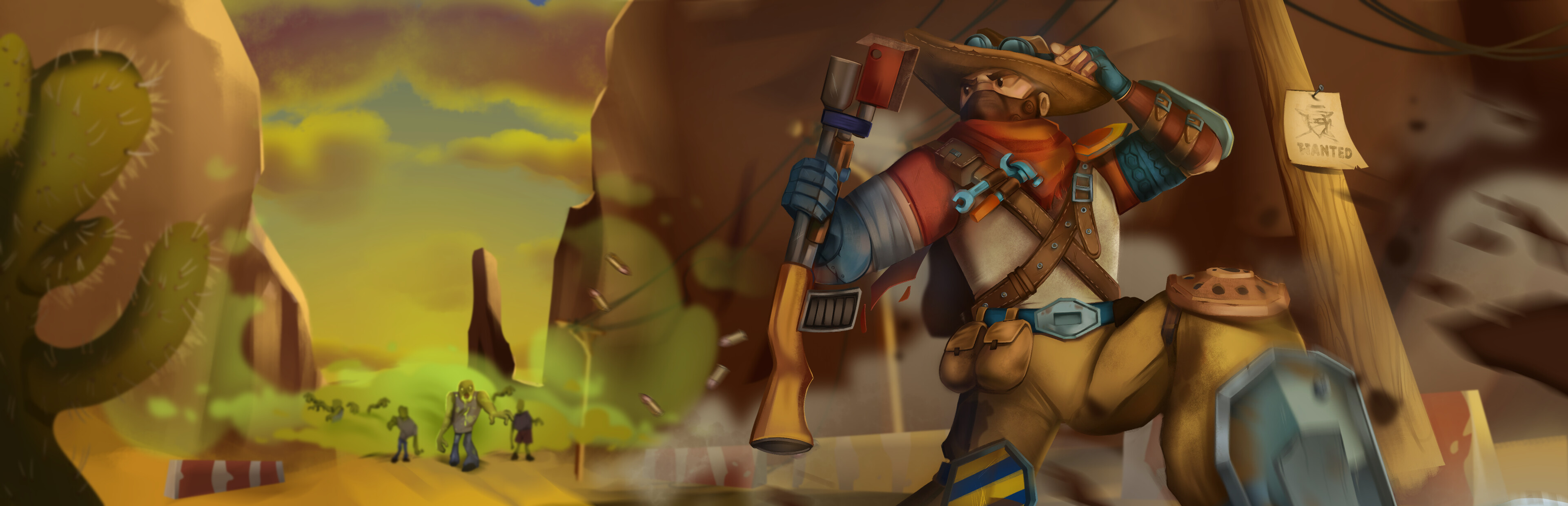 Wacky West brings the action you’ve always wanted from those endless runner fake mobile ads, but this time it’s the real thing! Dive into a fast-paced, post-apocalyptic world, fight off mutants, create sick combo builds, craft weapons, and survive the wasteland.