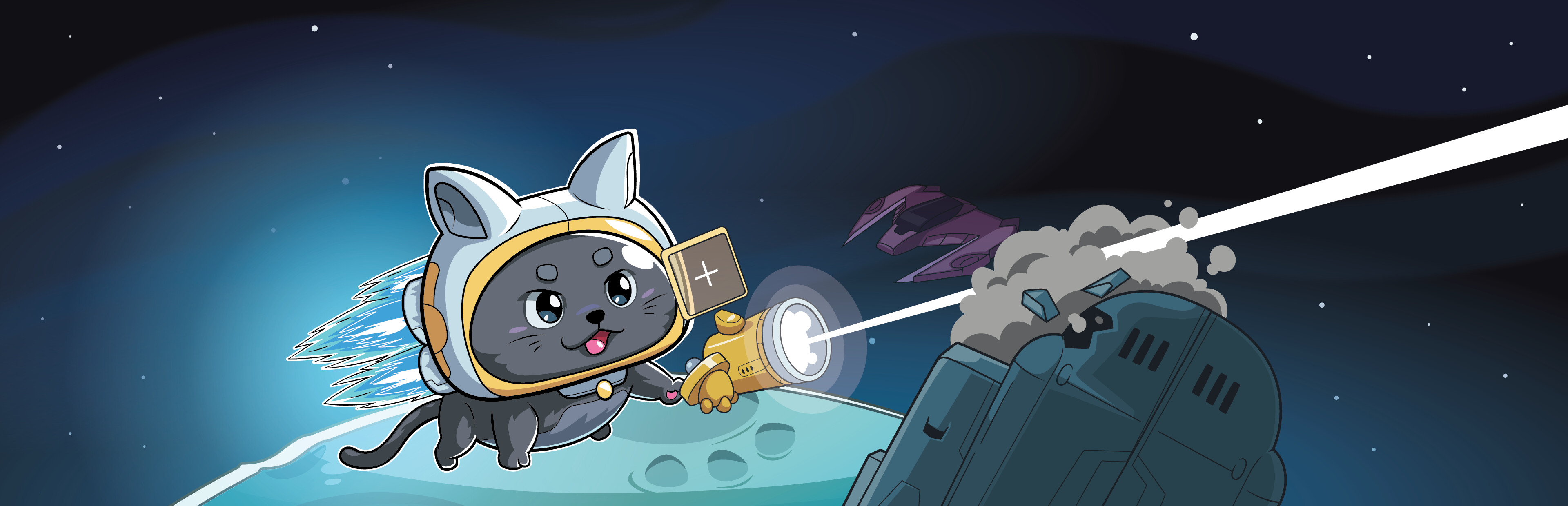 Combat endless waves of spaceships as Cosmos Kitten in this physics-based action roguelite! Unlock combinations of unique characters with powerful weapons to overcome the onslaught of enemies.