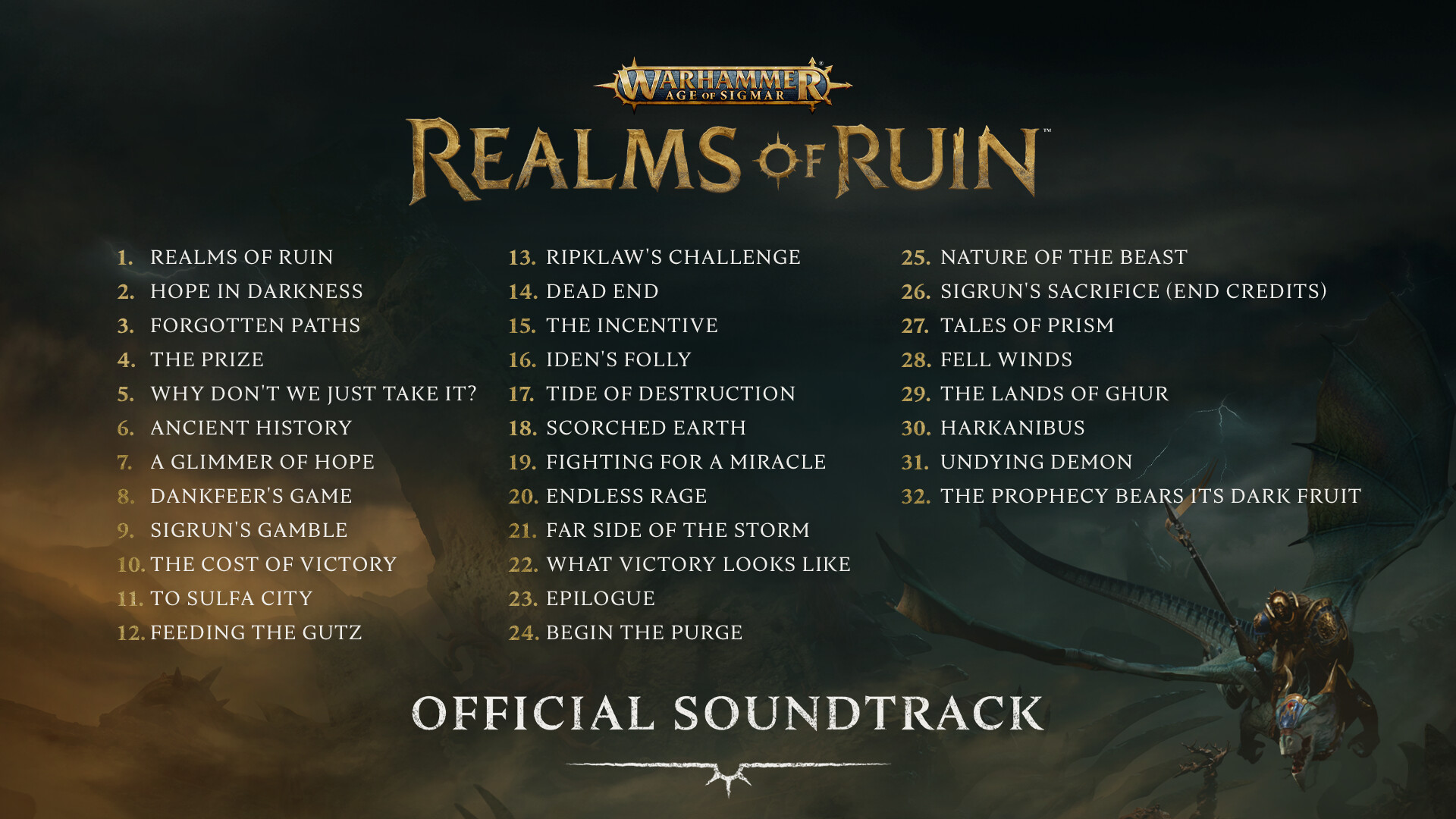 Venture forth into the unforgiving Realm of Ghur with the official 32-track soundtrack for Warhammer Age of Sigmar: Realms of Ruin.