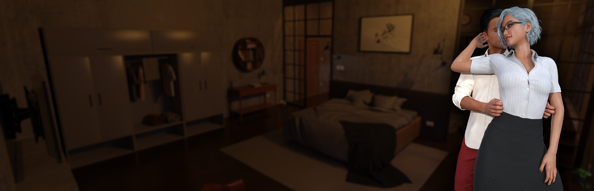 A steamy Visual Novel featuring high-definition graphics and realistic-looking characters set in beautiful decor. The story continues with Nikki and her husband inviting the boss home for another live cuckolding experience. Will Adam find pleasure in tainting their marital bed with another man?