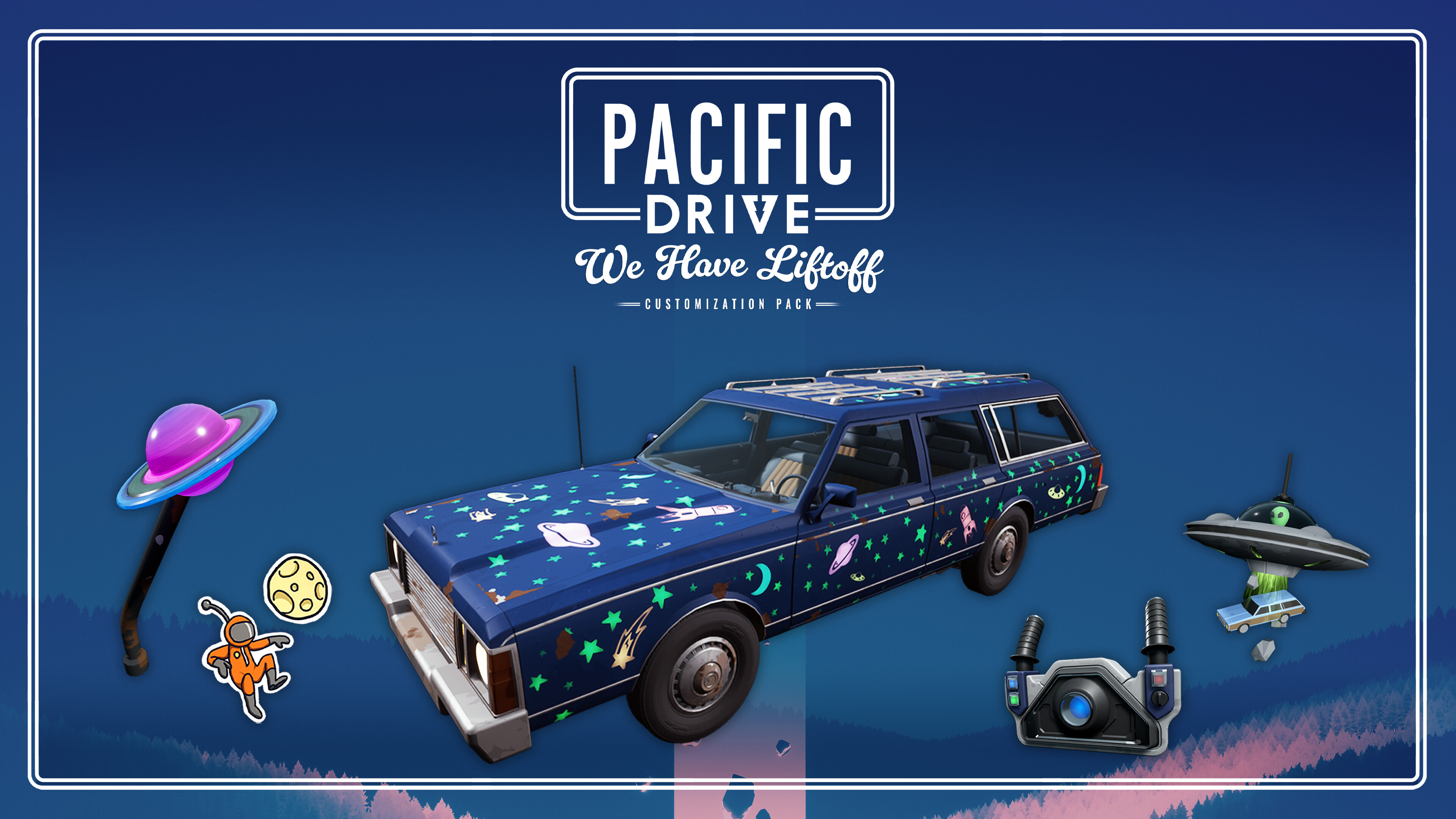 Get ready to blast off with this customization pack for Pacific Drive, including additional items themed around space exploration, that you can use to customize your station wagon.