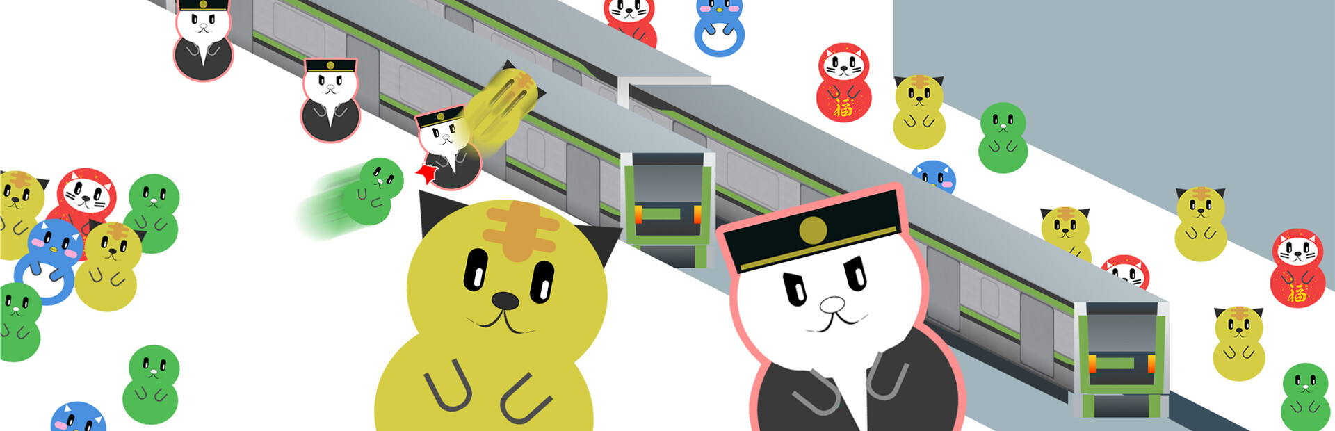Dive into the chain boarding game "DOASHIME - Close the Door!" and fill the train with cute animals. While avoiding being spotted by station staff, chain same-colored animals for points, and ensure they board. Score until the last second and ascend to the top of the global rankings.