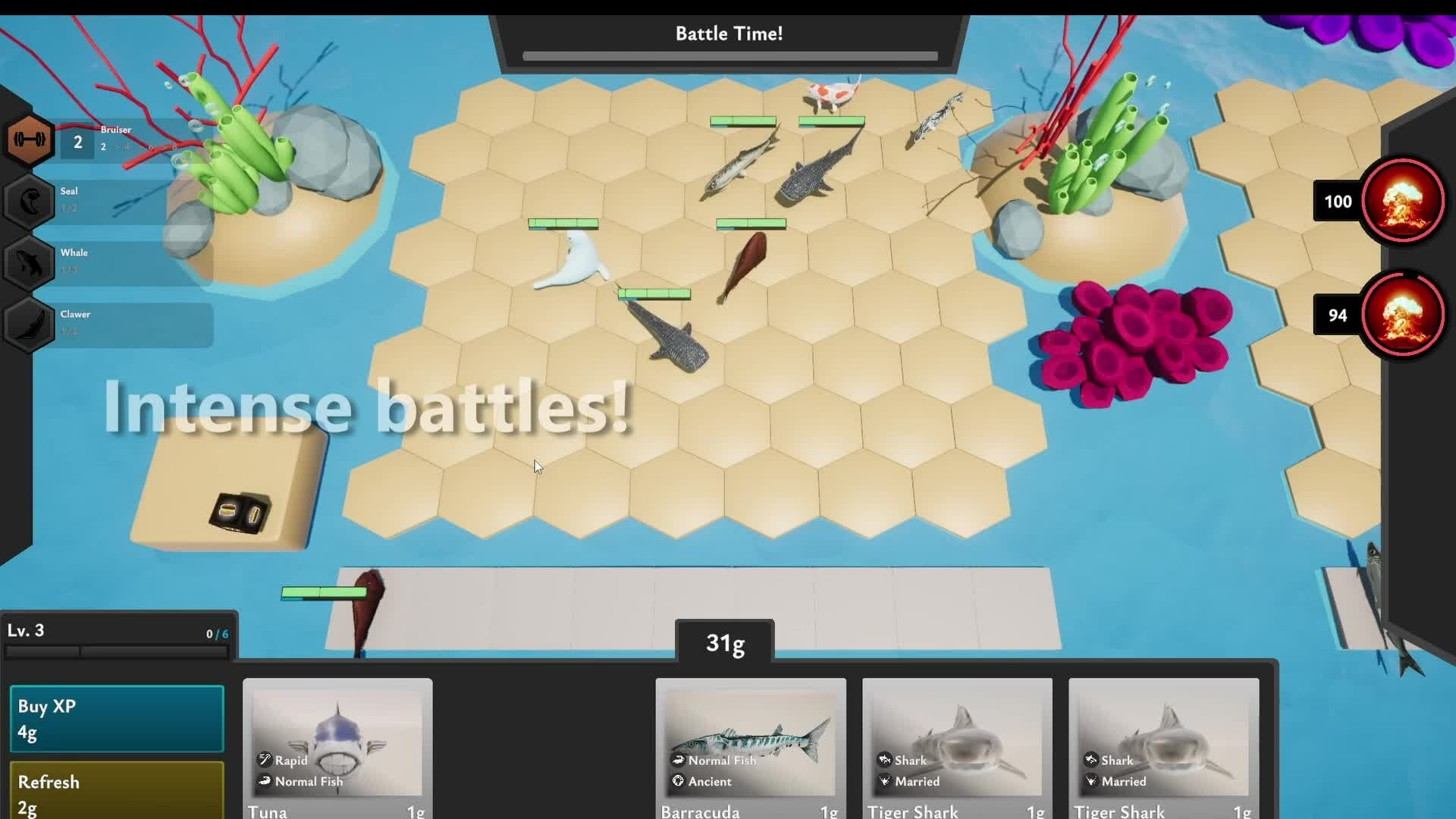 Seaside Schemes is an intense 1v1 competitive auto-battler! Inspired from Teamfight tactics and nothing else, I bring you Fishfight tactics, though I didn't name it that in fear of a lawsuit. Build your team, strategize, out-manoeuvre and out-play to climb the ladder and claim your spot as the goat!