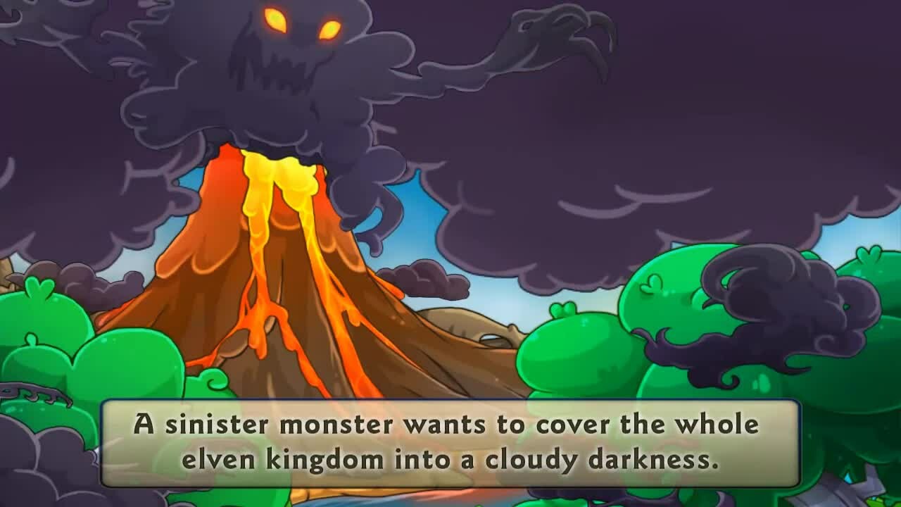 Darkness descends upon the land of elves and goblins. Black clouds of smoke rise from the deep fiery maw of the volcano at Sparkle Mountain. They spread and with them gloom and cruel curses ...