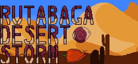 Lead the vegetable revolution alone or with a friend in the side-scrolling shoot ‘em up Rutabaga Desert Storm! Take down wave after wave of enemies, dodge their projectiles, and grab power-ups to boost your destruction! Can you defeat the oppressive humans and free the proletariat vegetable masses?