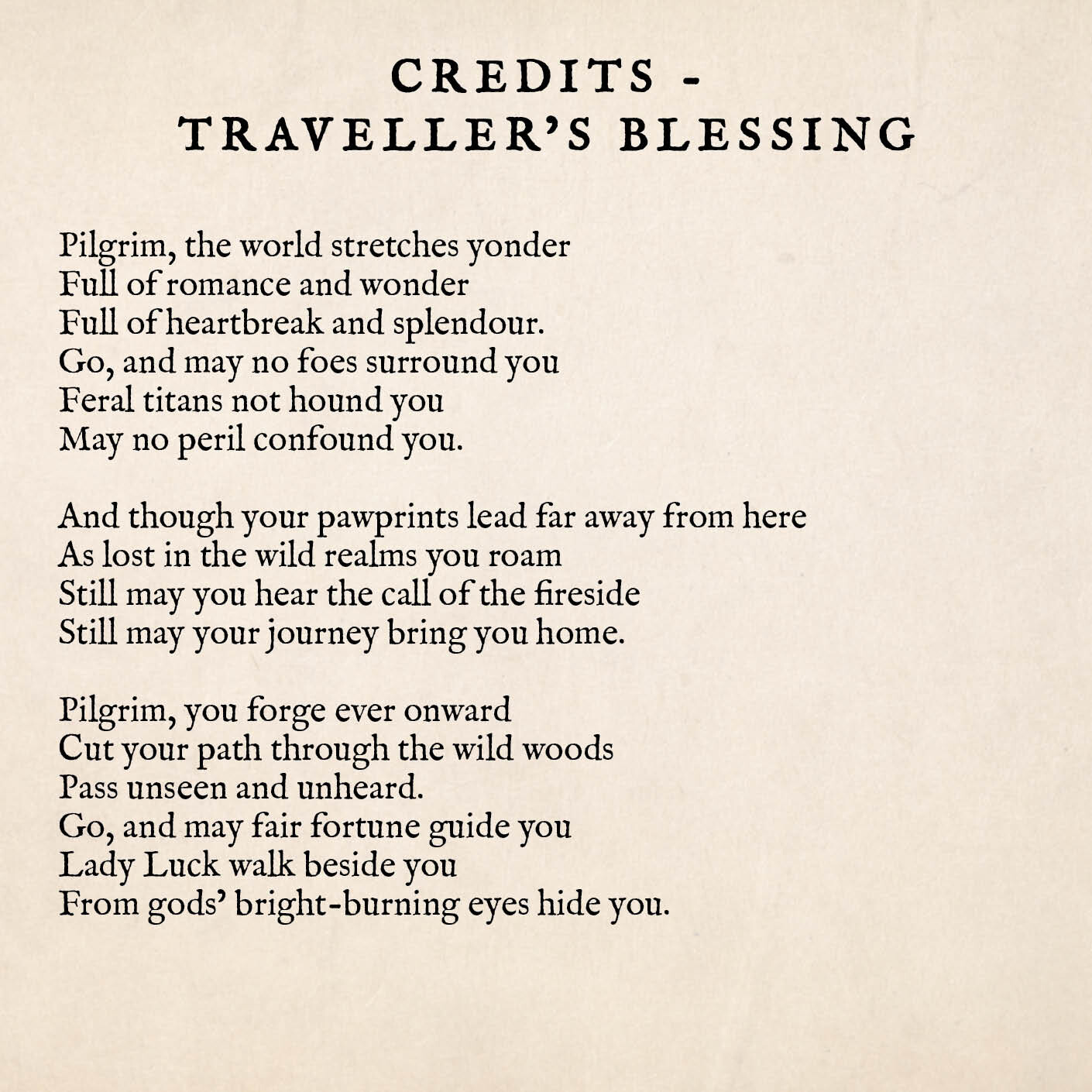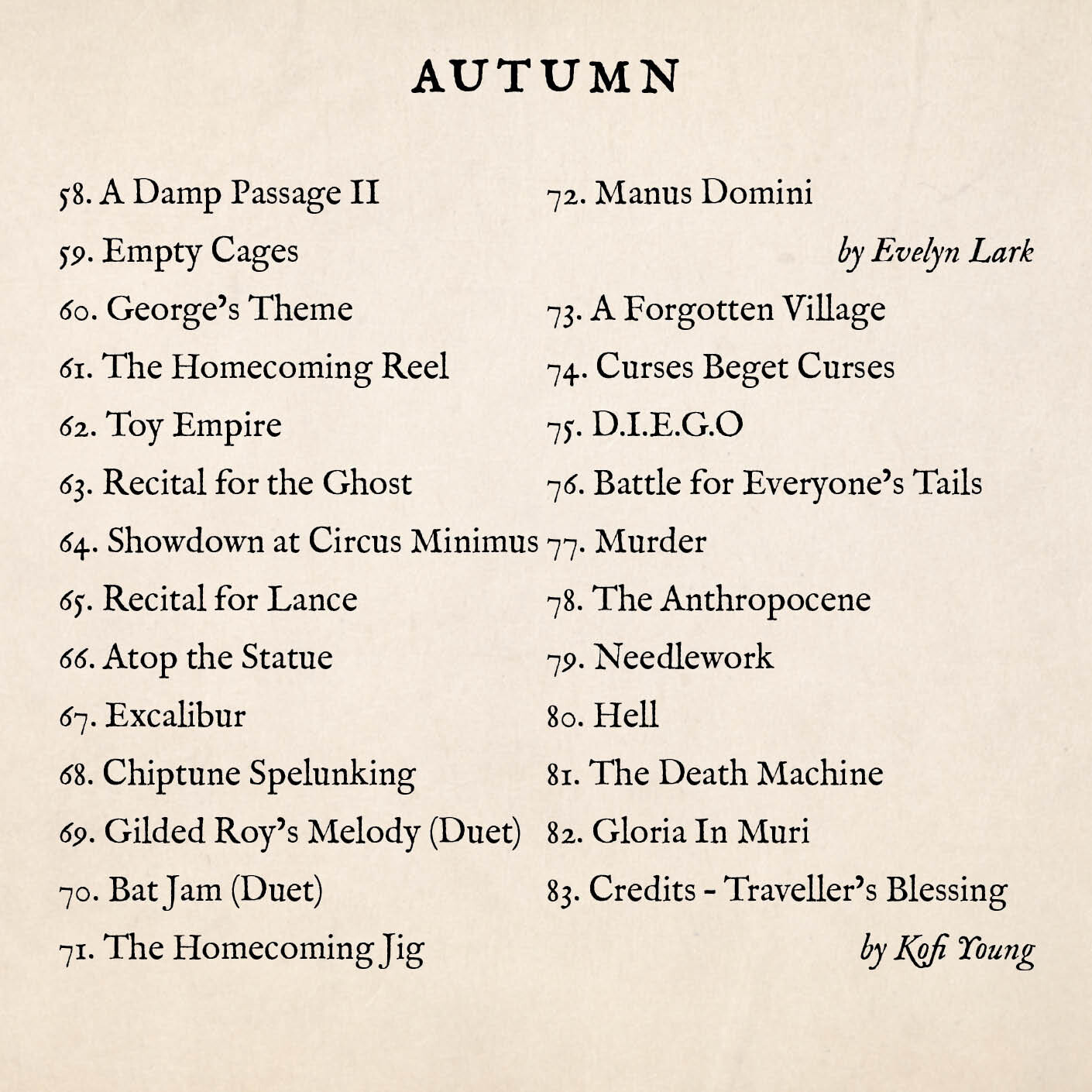 1 | 83 | Credits – Traveller’s Blessing | 5:05 |