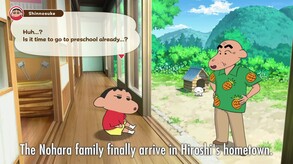 Shin chan starts a mysterious daily routine, traveling between two worlds: the Village in Akita and Coal Town.