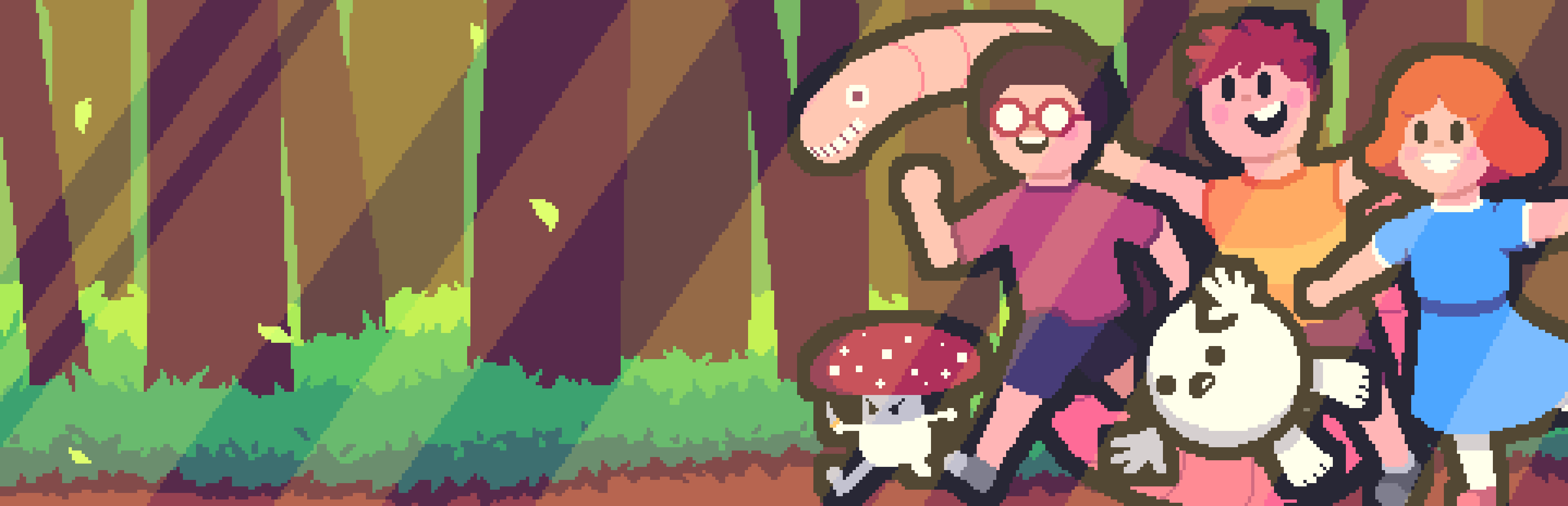 Quirkbound is an absurd, colorful and lighthearted turn-based fantasy JRPG. Join Isaac, Clara, and Naoto as they fight bizarre enemies, collect stickers, and cook falafel for the sake of saving the world.
