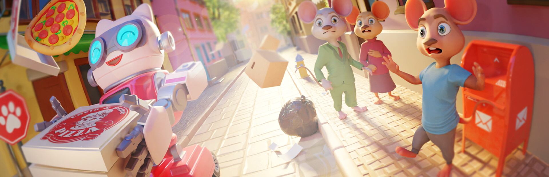 People are starving for Pizza! Become our new delivery operator. Race through the city with your trusty courier bot, and bring joy to your customers. Customize your robot and experiment with dozens of unique skills and upgrades. Bring your friends and enjoy chaos in online and local multiplayer.
