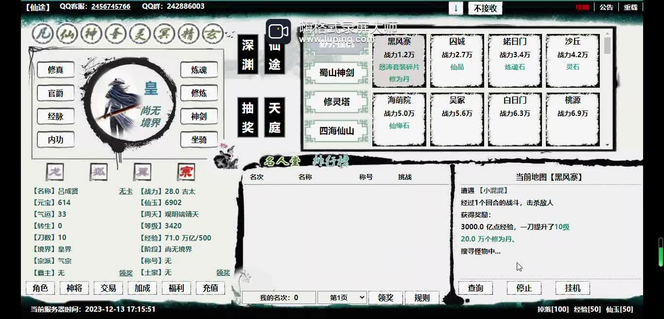 A text placement game with a cultivation theme, featuring 64 cultivation systems, 24 independent dungeons, multiple interactive modes, and various combat economy modes.