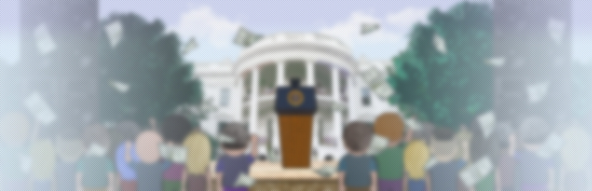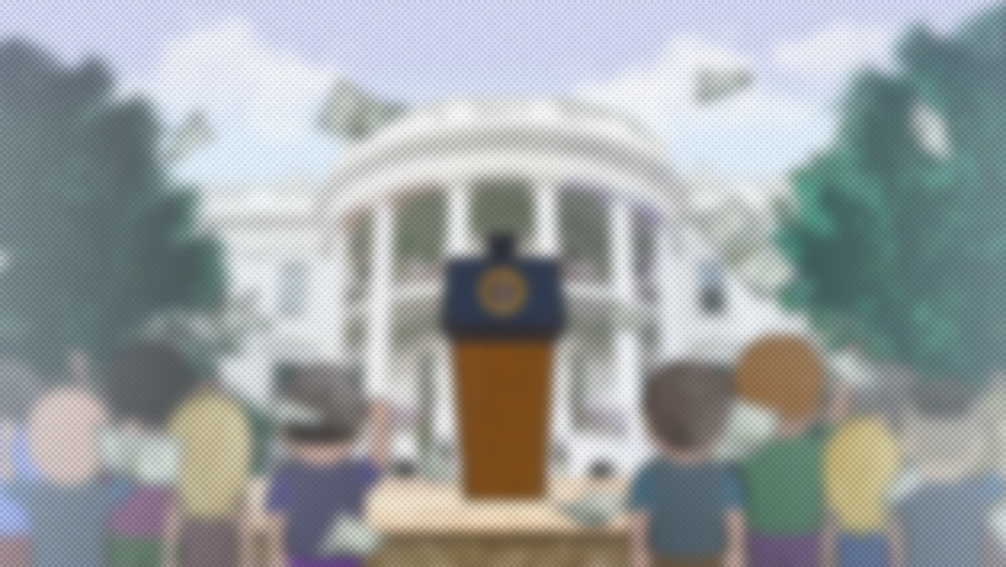 You are the leader of the Memocratic Party. Crowds of people have gathered under your office to protest. Give them money or drive them out, the choice is yours. Each choice will determine how long you stay in power.