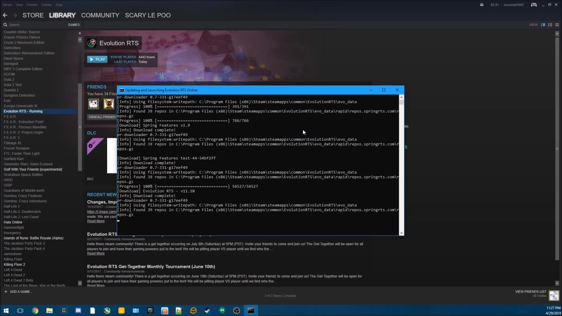 How many players are playing Evolution RTS right now on Steam?