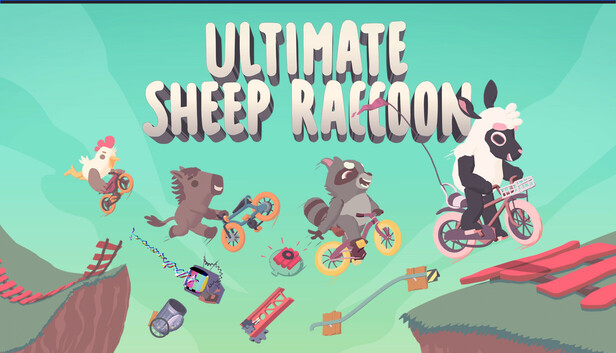 Ultimate Sheep Raccoon is a bike-racing party game where you and your friends build the course together. Add obstacles and dangerous traps, take the lead with power-ups, and race to the finish!