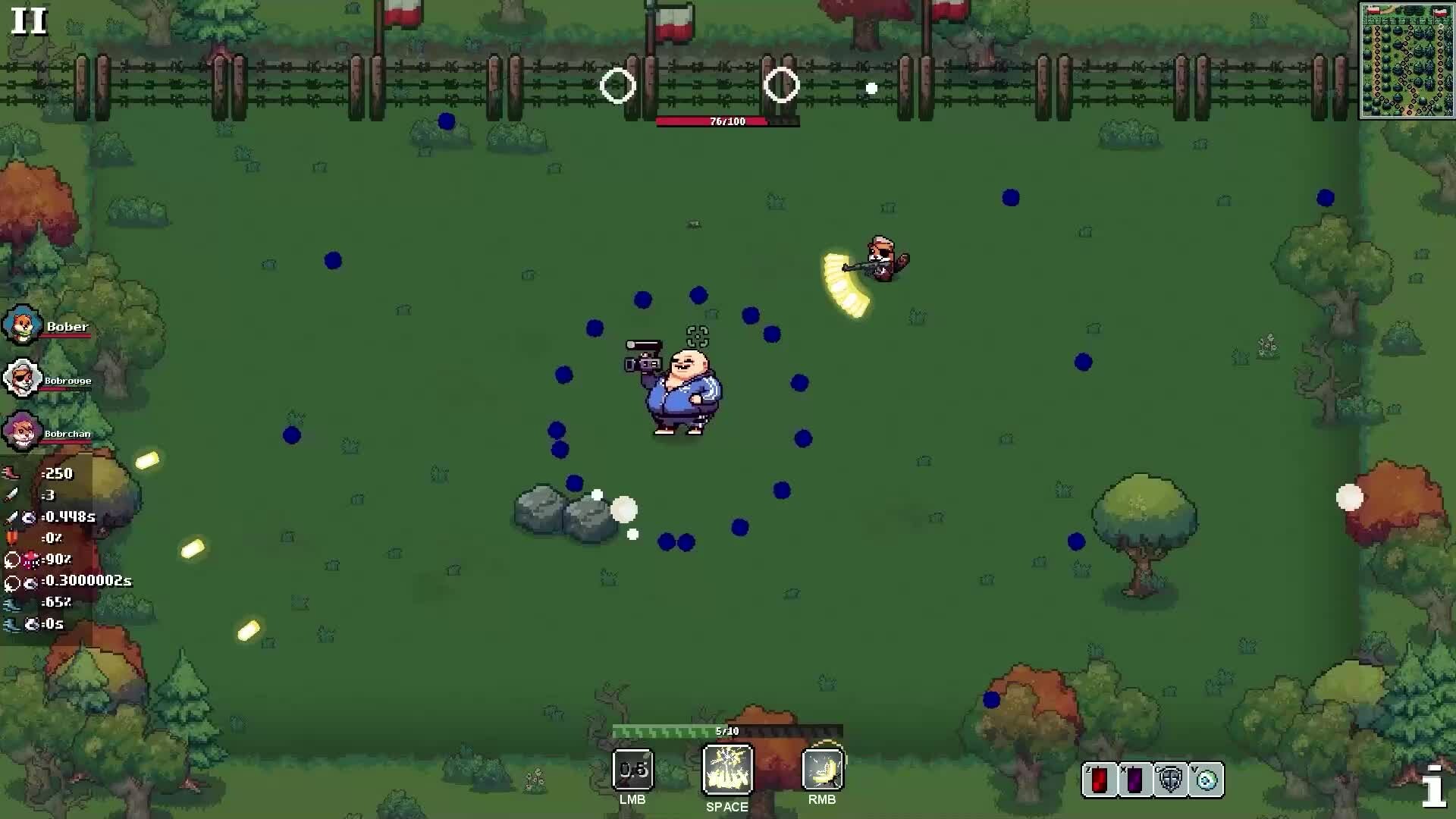 Prepare for a wild and unforgiving adventure in BOBR KURWA, the hardcore roguelike that will test your skills and push you to the limits! You control 3 unique heroes at once, each with distinct spells that can be upgraded. The goal is to escape from Poland through a crowd of enemies.