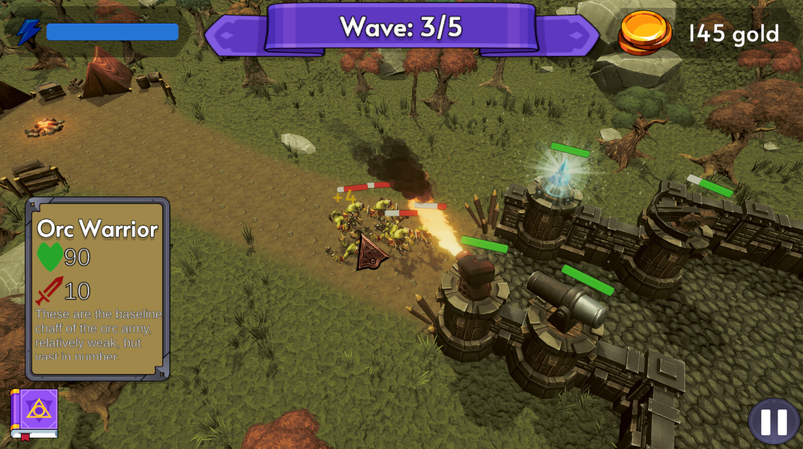 Build Towers and Cast Spells in order to vanquish your foes and defend your arcane realm from the raging orc army in this classic Tower Defence Game!