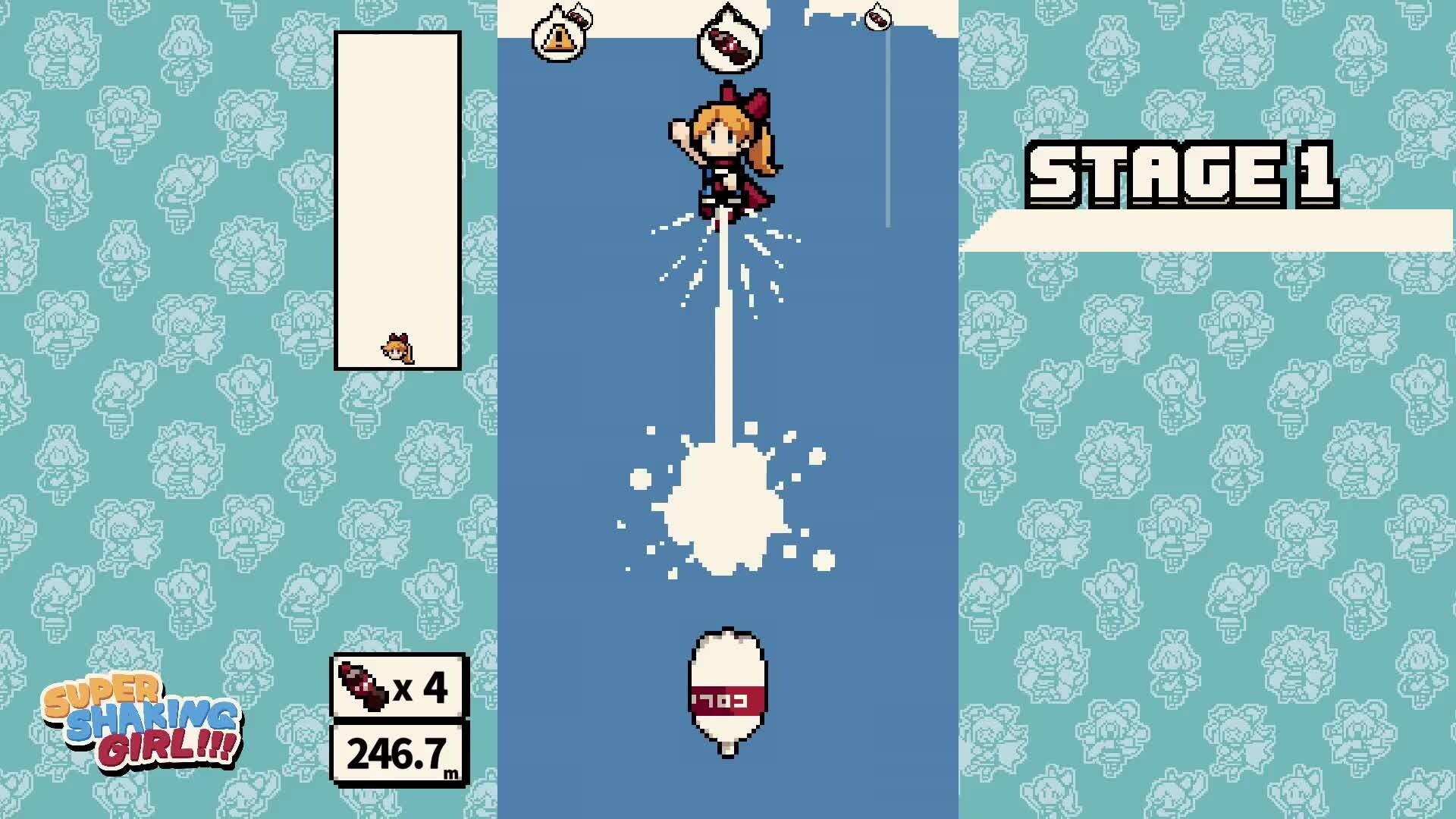 Shake things up with SUPER SHAKING GIRL!!!, an exhilarating action game that'll have you shaking sodas to propel yourself through the air! Shake, fly, rinse, and repeat... The sky's the limit!
