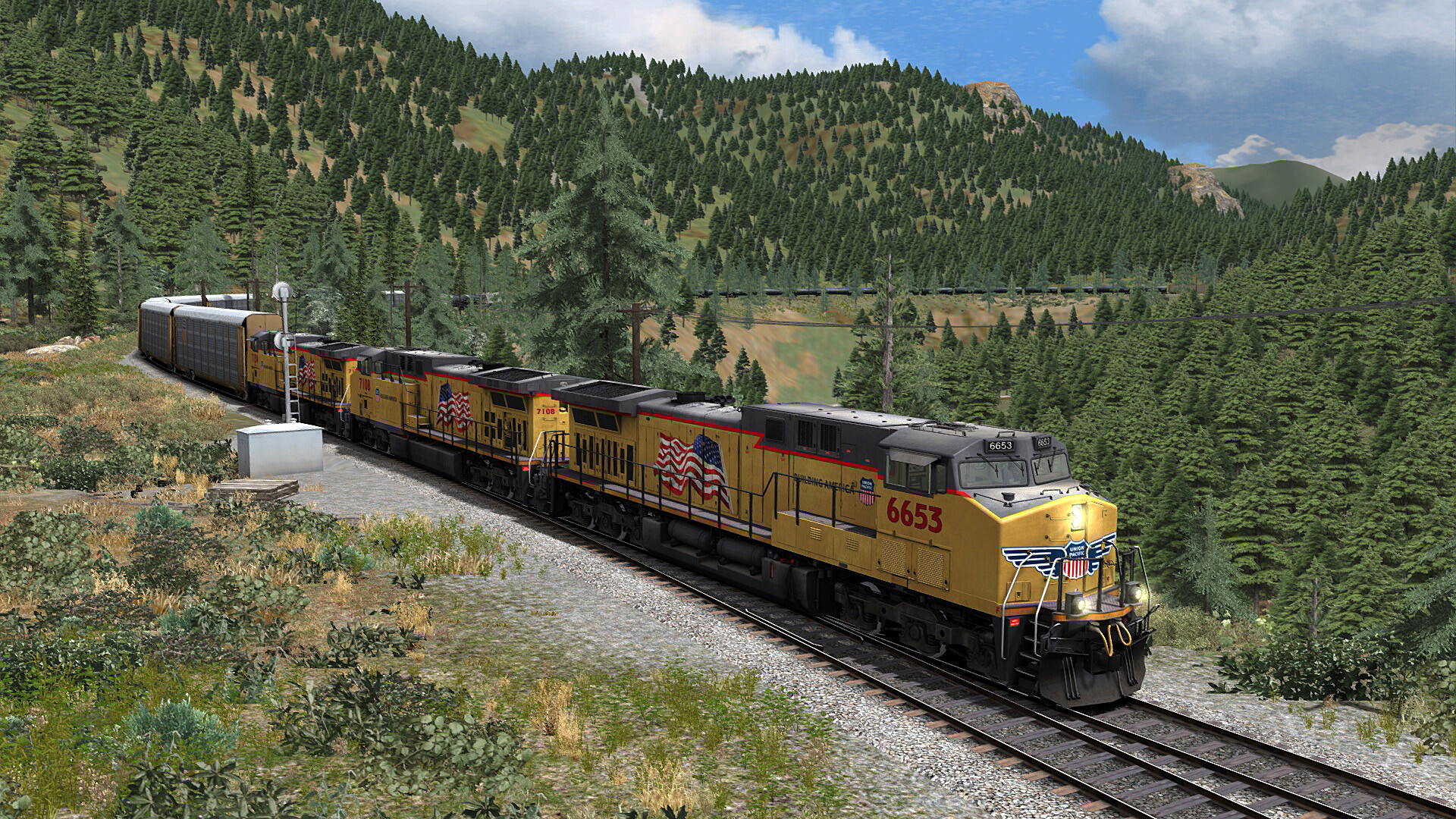 Accomplished developer High Iron Simulations brings Union Pacific and BNSF railroading to the famed and rugged California canyon with Feather River Canyon Enhanced Scenario Pack 02.