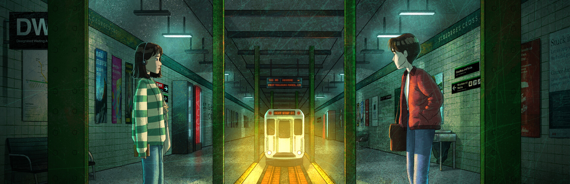 Stuck in the Present is a 3D side-scrolling psychological horror title where two friends relive painful memories within the uncanny depths of twisting subway stations in a large, unfamiliar city.