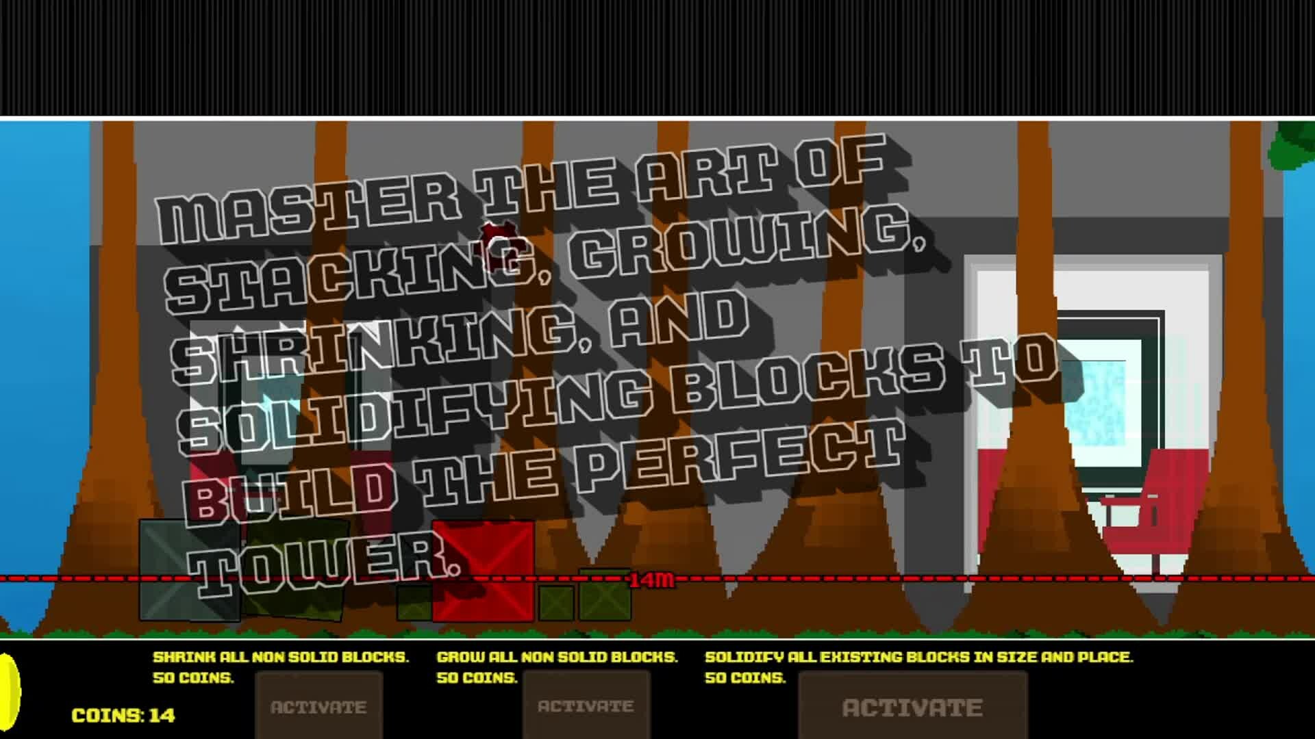 Stack, grow, shrink, and solidify blocks to make the tallest tower possible. The taller it becomes, the harder it is from everything wobbling and crashing down. How tall will your tower become?
