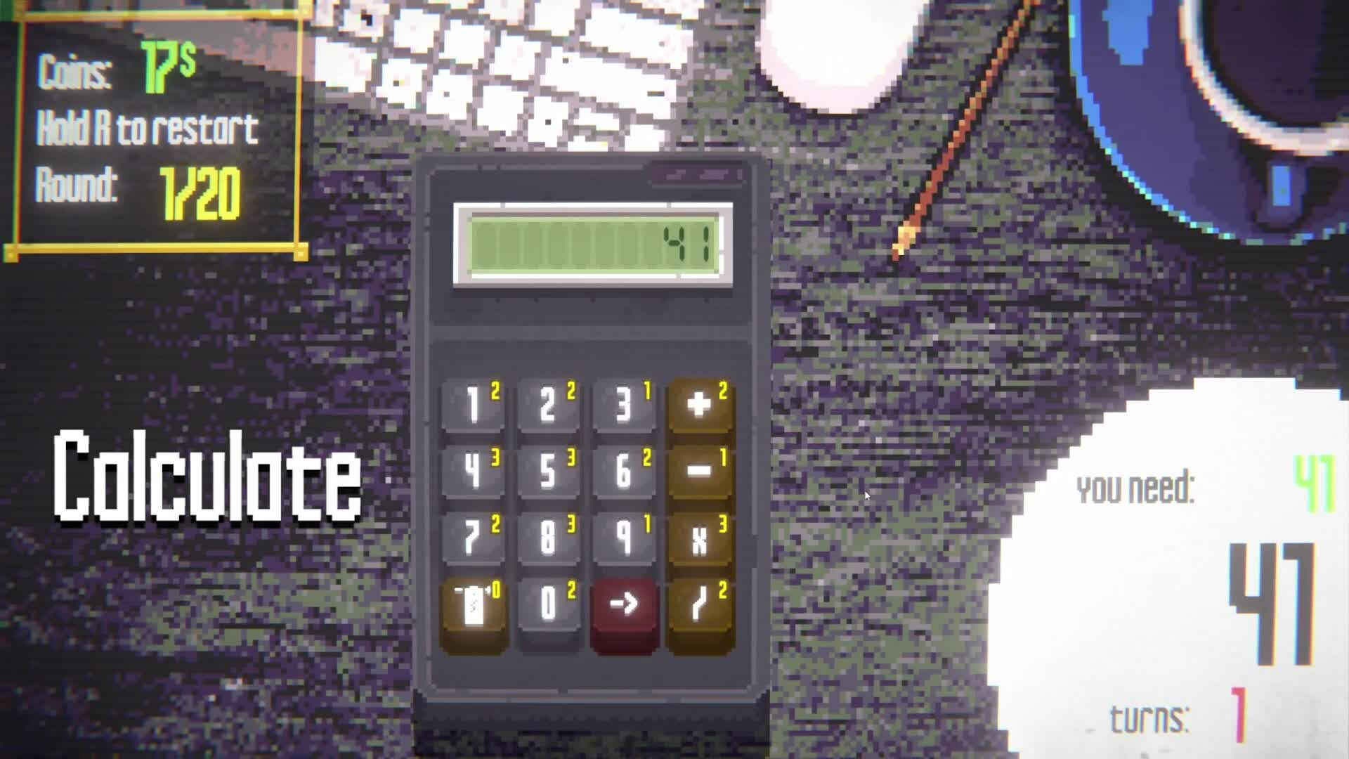 We've made a calculator roguelike! Yes, it's not a joke. A boring device has turned into an interesting strategy, where each calculator you collect sets its own style of play. Can you count all the numbers and prove who's the king of calculations here?