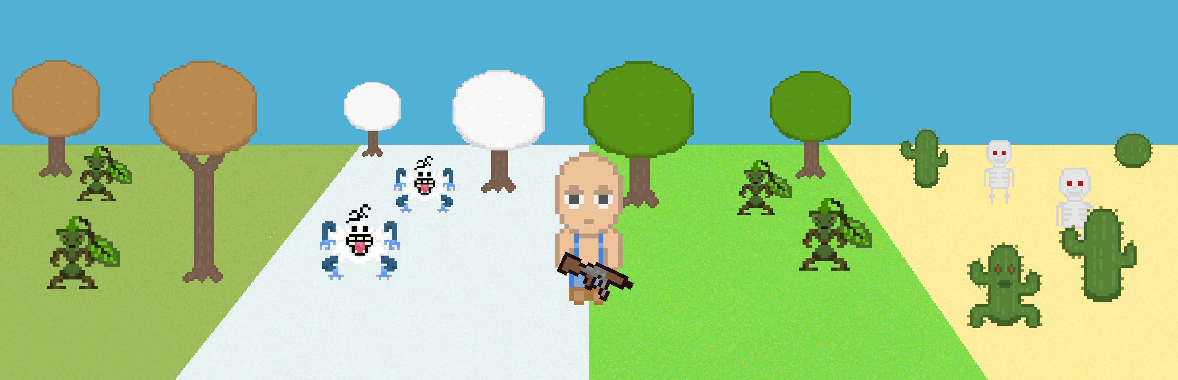 Meander your way around a never-ending world, defeating successive waves of enemies and stealing their pennies so that you can buy items that'll help you defeat even more enemies. There's also boss fights. And frogs.