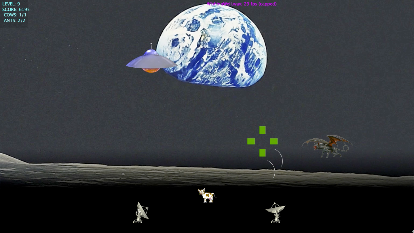 Defend Earth from hostile aliens and hungry chupacabras in this modern classic arcade game. Created by a couple of real life VLA Operators!